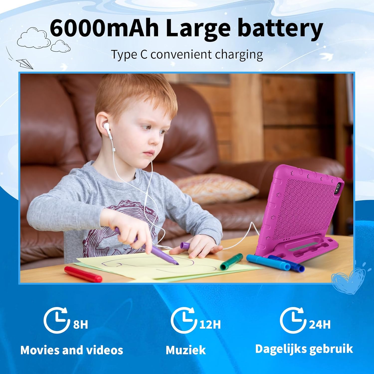 6000mAh battery and low-power CPU can enhance your experience and let you enjoy up to 7-10 hours of reading, watching programs and surfing the web. A great partner for kids to play and learn
