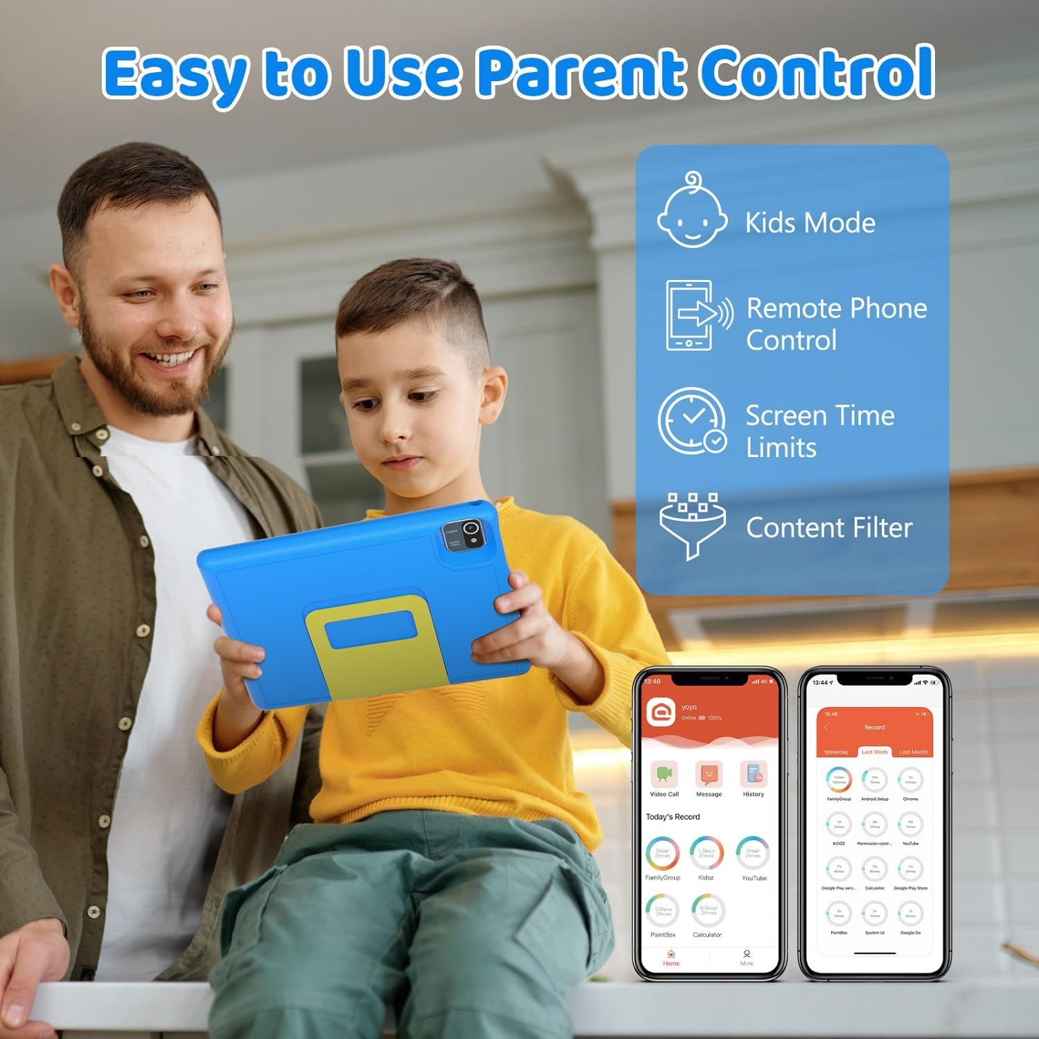【Parental Control Mode】This kids tablet built in parental control security system. Parents can set the passwords, the screen time limit, and hand-pick content for your kids and ensure they are browsing safe websites. Through the parental control mode, you can create and customize profiles for kids’ accounts, hand-pick content for your kids, control screen time and ensure they are browsing safe websites. These security settings can be adjusted as kids grow with content tailored to their age.