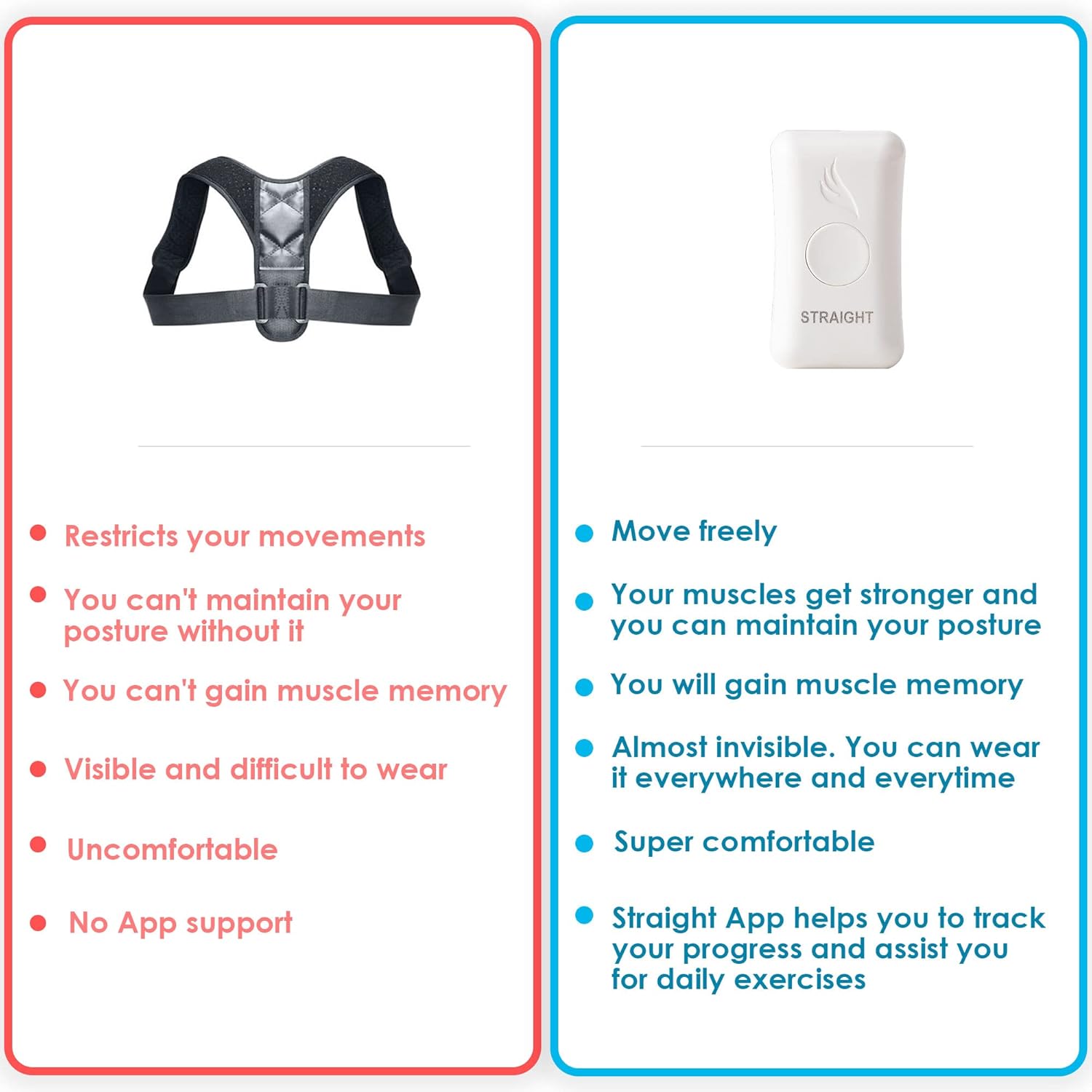 IMPROVE YOUR POSTURE: Meet STRAIGHT the simplest, fastest, and most natural way to improve your posture. Kodgem Straight back brace posture corrector for women & men strengthens back and core muscles. The Straight is your wireless upright trainer. It trains you to maintain a healthy posture by using gentle vibrations to remind you to stay up straight. The mobile app helps you keep track of your progress. the Straight reminders when you slouch. This is the best slouch preventer