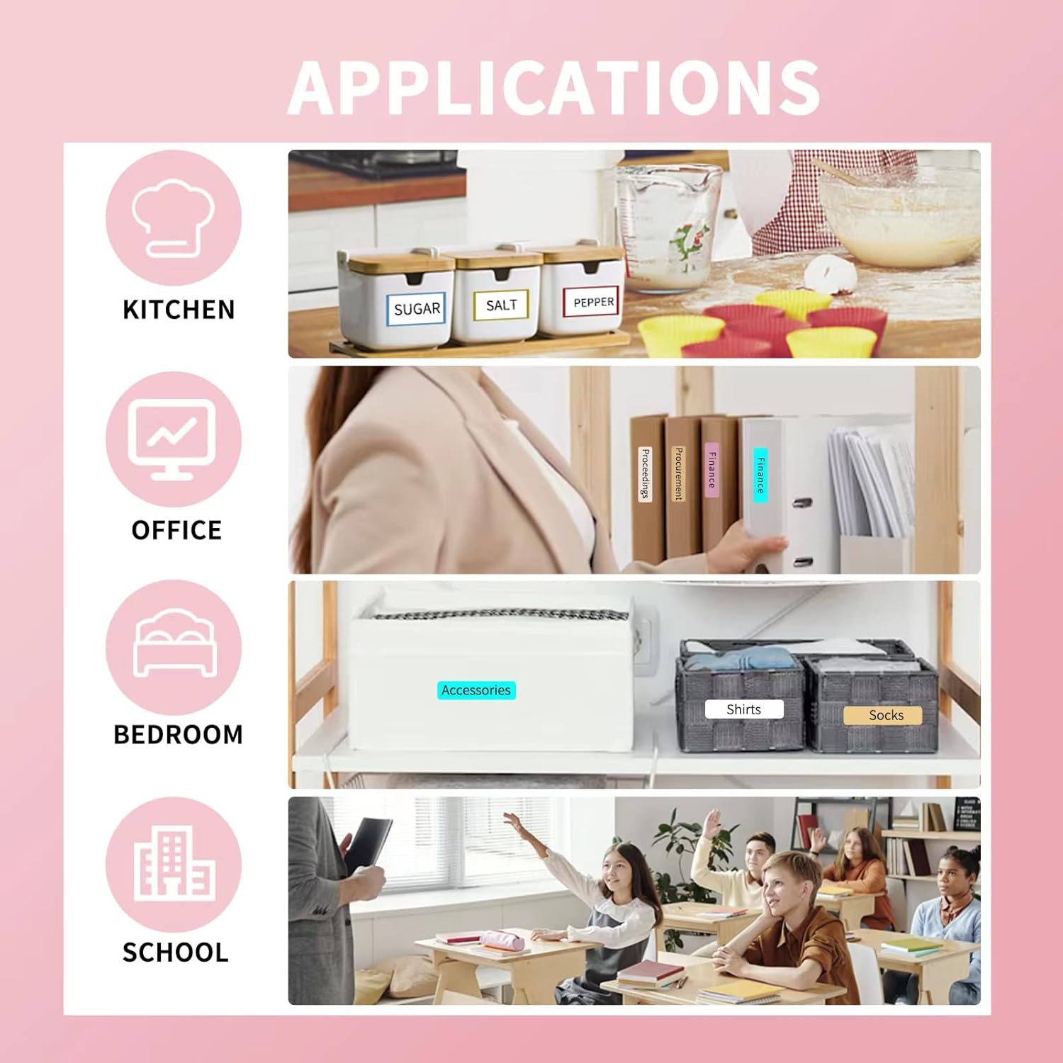 【Can Use Multiple Styles Cute Label Tapes】–Portable label maker machine can use variety of styles of tapes,such as white, color, fruit,cherry blossoms, cable labels, and rare transparent labels,This tape is long-lasting,waterproof,wipeable, tear-resistant, self-adhesive.