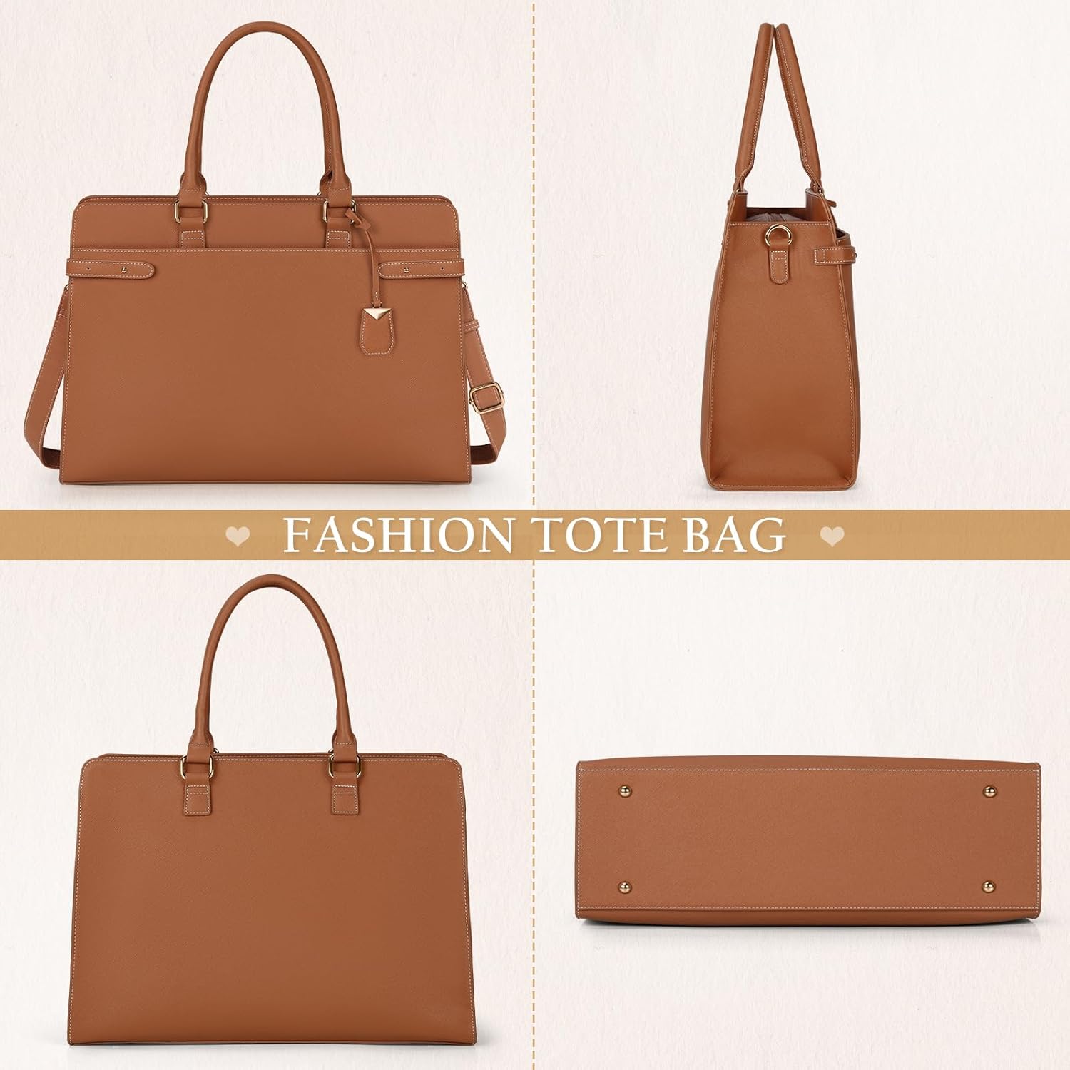 Laptop Bag for Women 15.6 Inch Leather Tote Bag Professional Work Bag Waterproof Computer Briefcase Business Office Bag Large Capacity Handbag Shoulder Bag, Brown