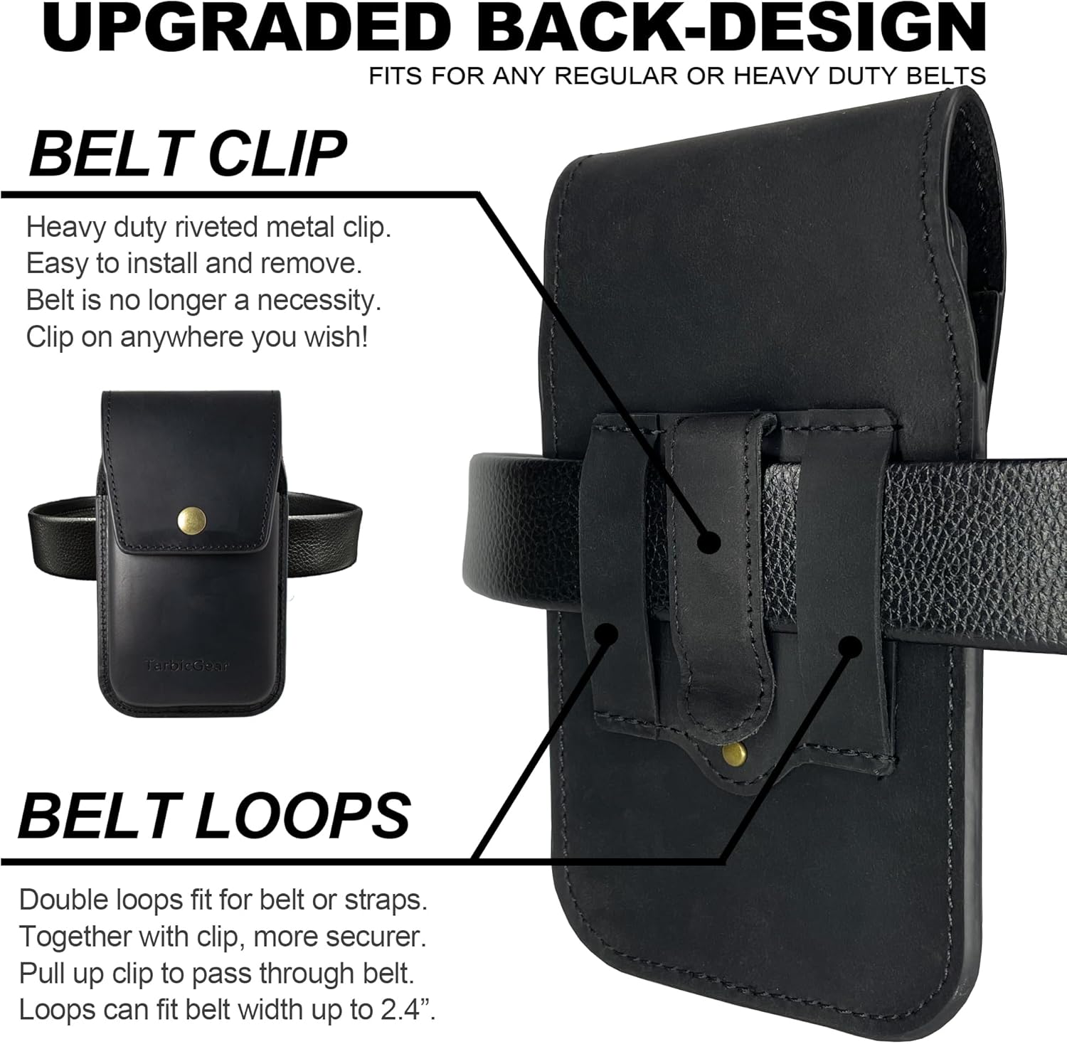 Leather Phone Pouch for Belt, S23 Ultra Belt Clip Holder for Men, Large Phone Holster, iPhone 14 Pro Max Belt Clip Case, Universal Smartphone Leather Sheath Magnetic Closure Black
