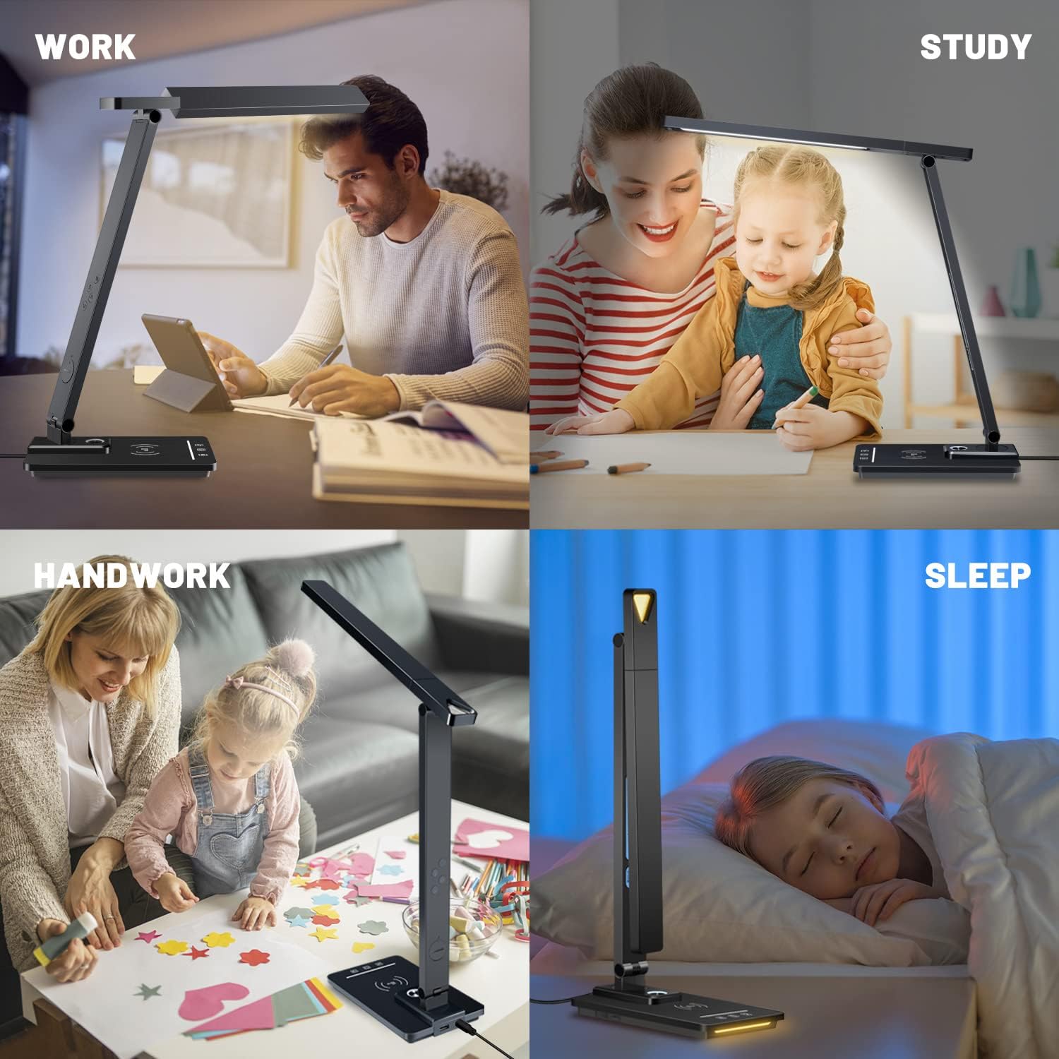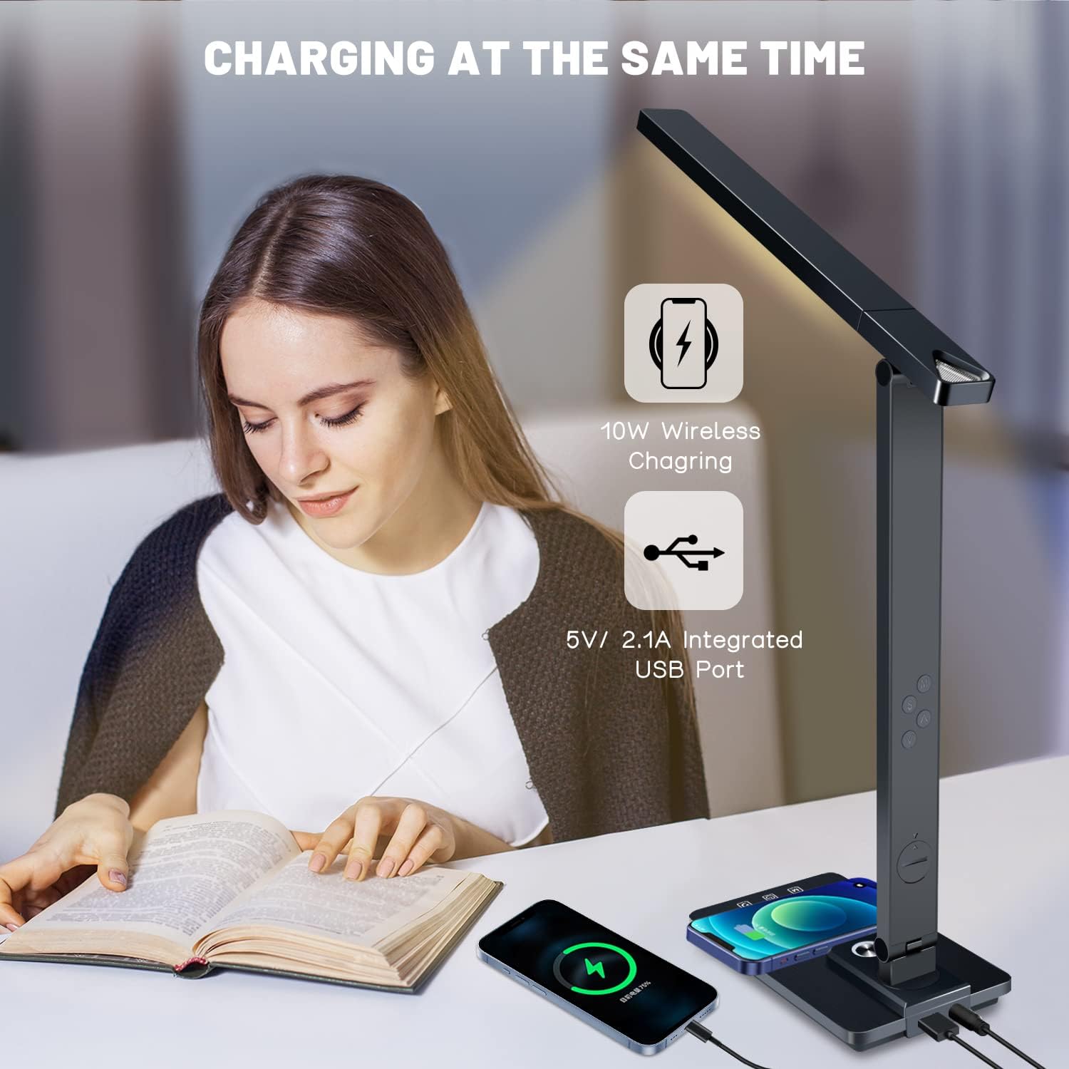 DUAL CHARGING CAPABILITIES | Equipped with a USB charging port and 10W wireless charger (5V/2A adapter included), charge 2 devices while using the reading lamp. Keeping your smartphone, tablet, or other gadgets stay powered while you work or study.