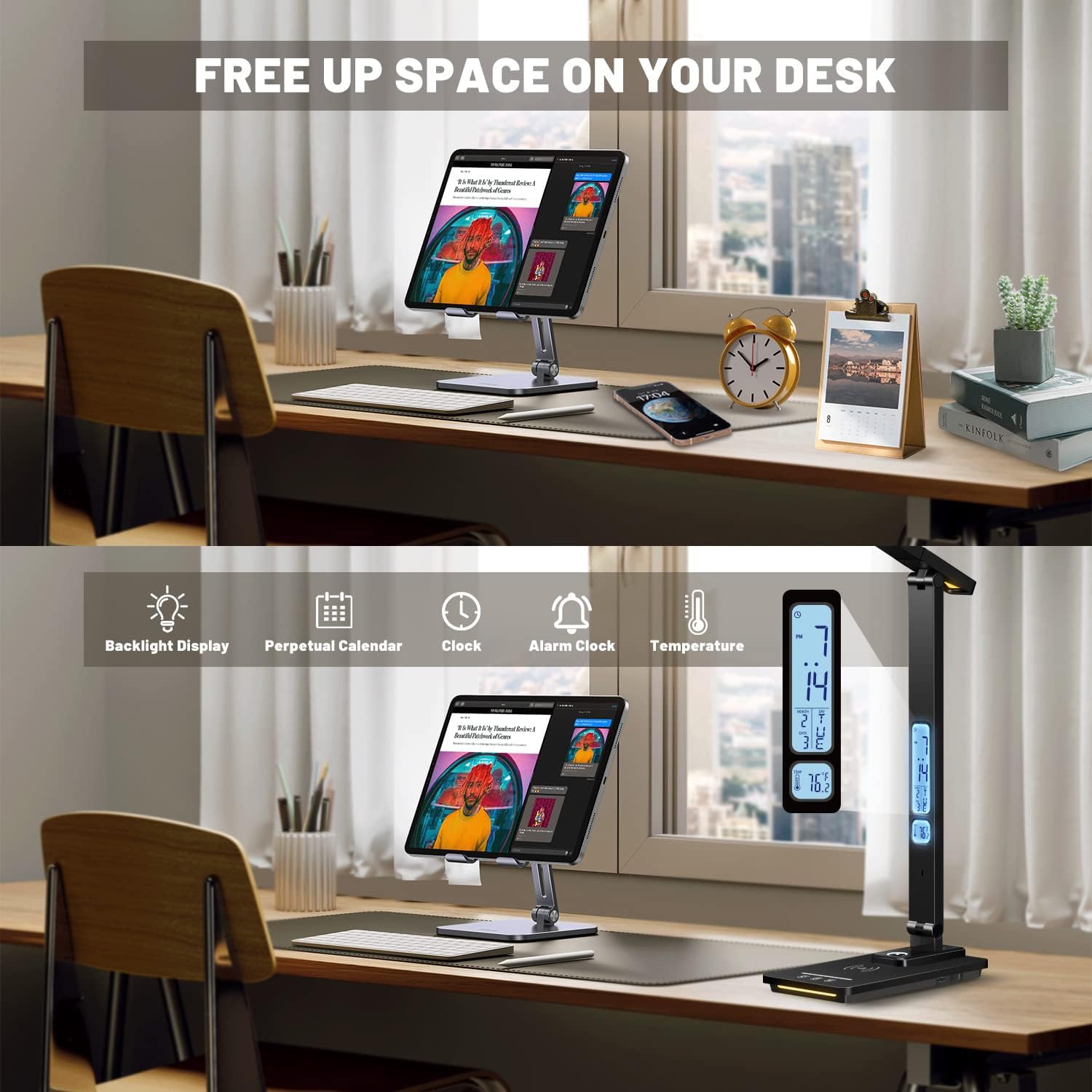 UPGRADE USER-FRIENDLY | Desk-led lamp with upgrade LCD screen, press the “M” button for 3 seconds to turn on/off the screen light. Includes time, date, and temperature display, stay organized, enhance productivity, and eliminate clutter from your workspace.