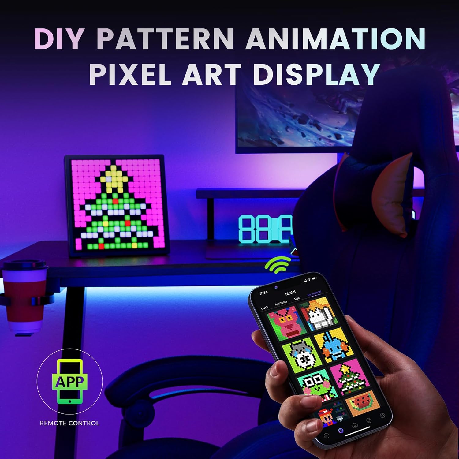 Be the first to review “LED Pixel Art Display, Bedroom Decor Aesthetic Smart Clock DIY Patterns Text Programmable Digital Display Board, RGB Cool Gaming Accessories for Game Living Room Decoration”