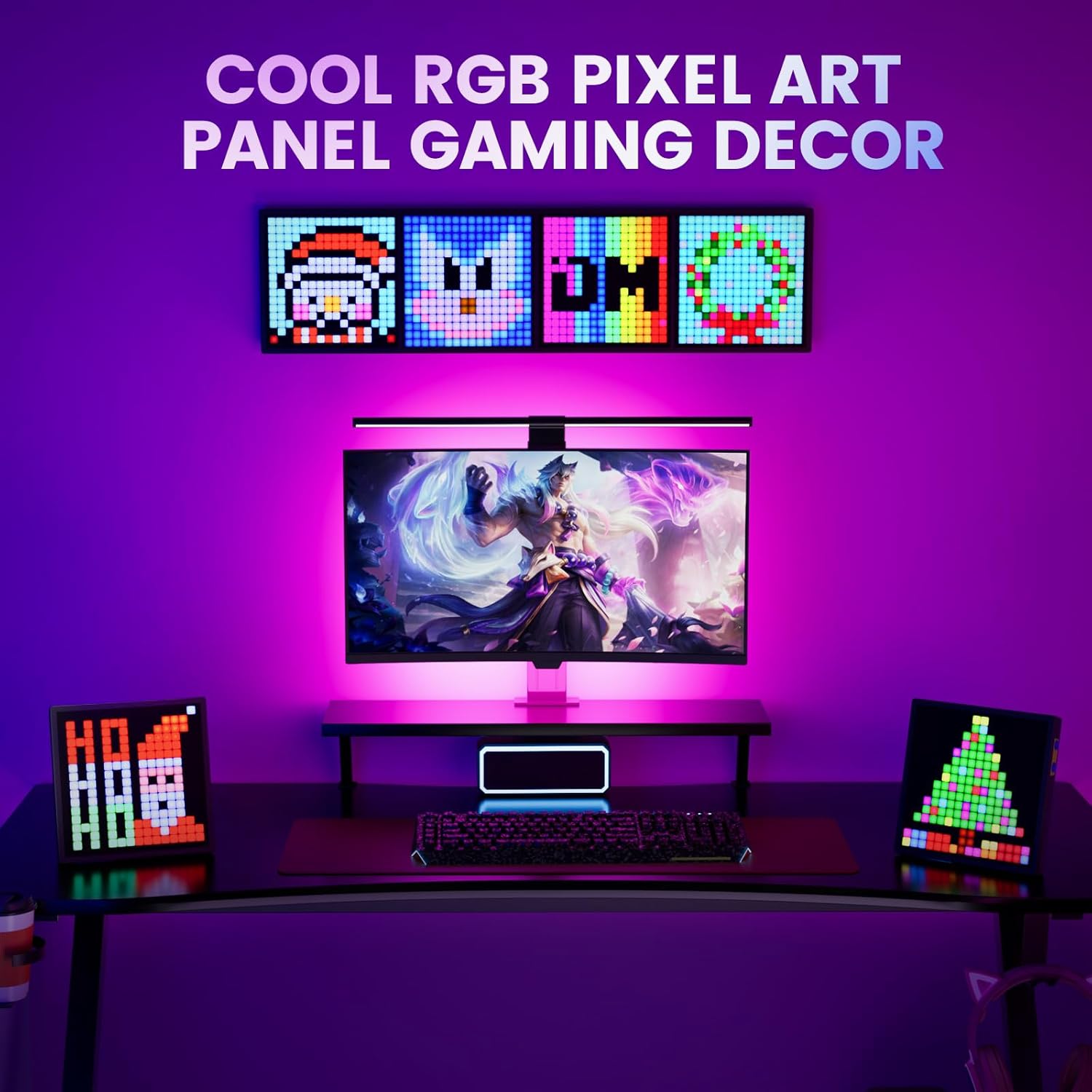 【Colorful RGB Pixel Screen】 Kutuspon RGB pixel panel is an excellent addition to your cool gaming desk accessories, led light display has full color pixel frame, make the room decor aesthetic with vibrant RGB pixels, enhance your movie nights, music sessions, and gaming experiences with this dynamic display.