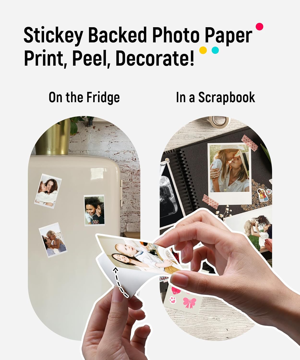 [2×3 Sticky-Backed Photo Paper] The phone printer for iphone comes w/ 5 sheets of Zink colored paper, which is treated with a glossy, protective polymer overcoat that is water resistant, tear resistant, smudge proof, and dry to the touch. Thanks to its sticky-back, photos are also stickers, perfect for scrapbooking, decorating photo albums, laptops, and more. Peel off the adhesive backing and you can stick it anywhere. Photos printed by this printer for iphone will not fade even for 10 years! Get Liene photo printers now as amazing Mother’s gifts for yourself and your loved ones.
