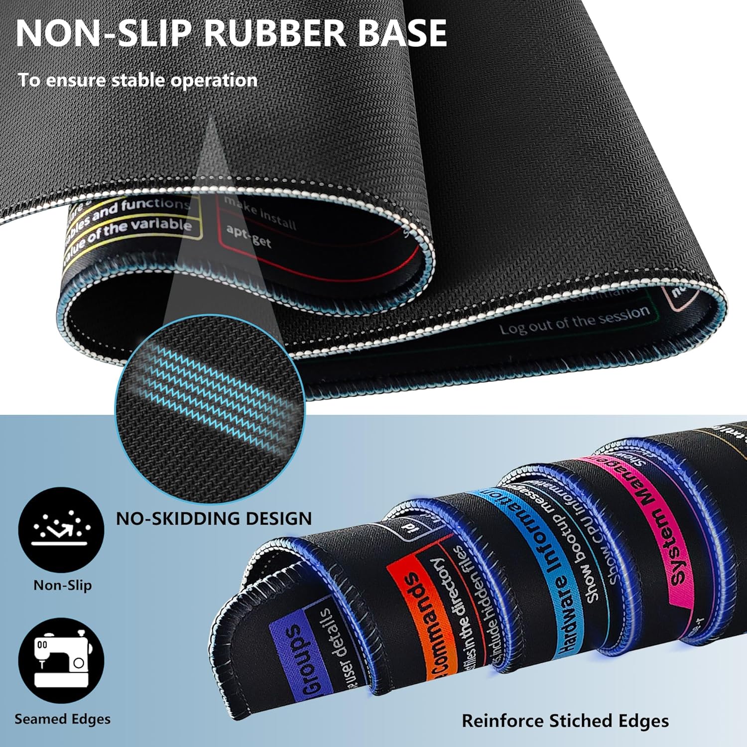 💼【Necessary Office Supplies】Our linux command line mouse pads for desk is designed for comfort and productivity. Measuring at 31.5×11.8 inches, it provides ample space to accommodate your mouse, keyboard, and other desk essentials. This shortcut computer pad provides extensive compilation of commonly used command lines for Linux/Unix operating systems, reducing programming time on Linux machines.