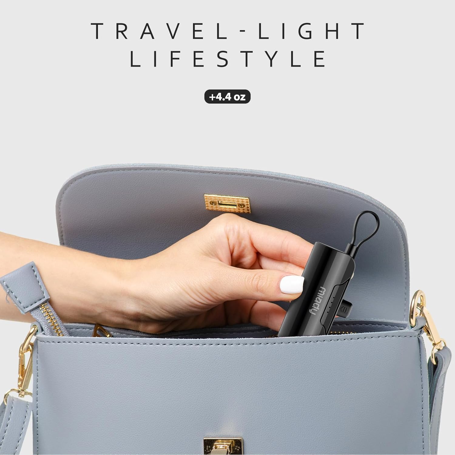 【Travel-light Lifestyle】 Provides convenient charging of iPhones without the need for carrying extra cables. With dimensions of just 3.1 x 1.8 x 1.0 inches, weighing 4.4 oz, it effortlessly fits into any bag or pocket.