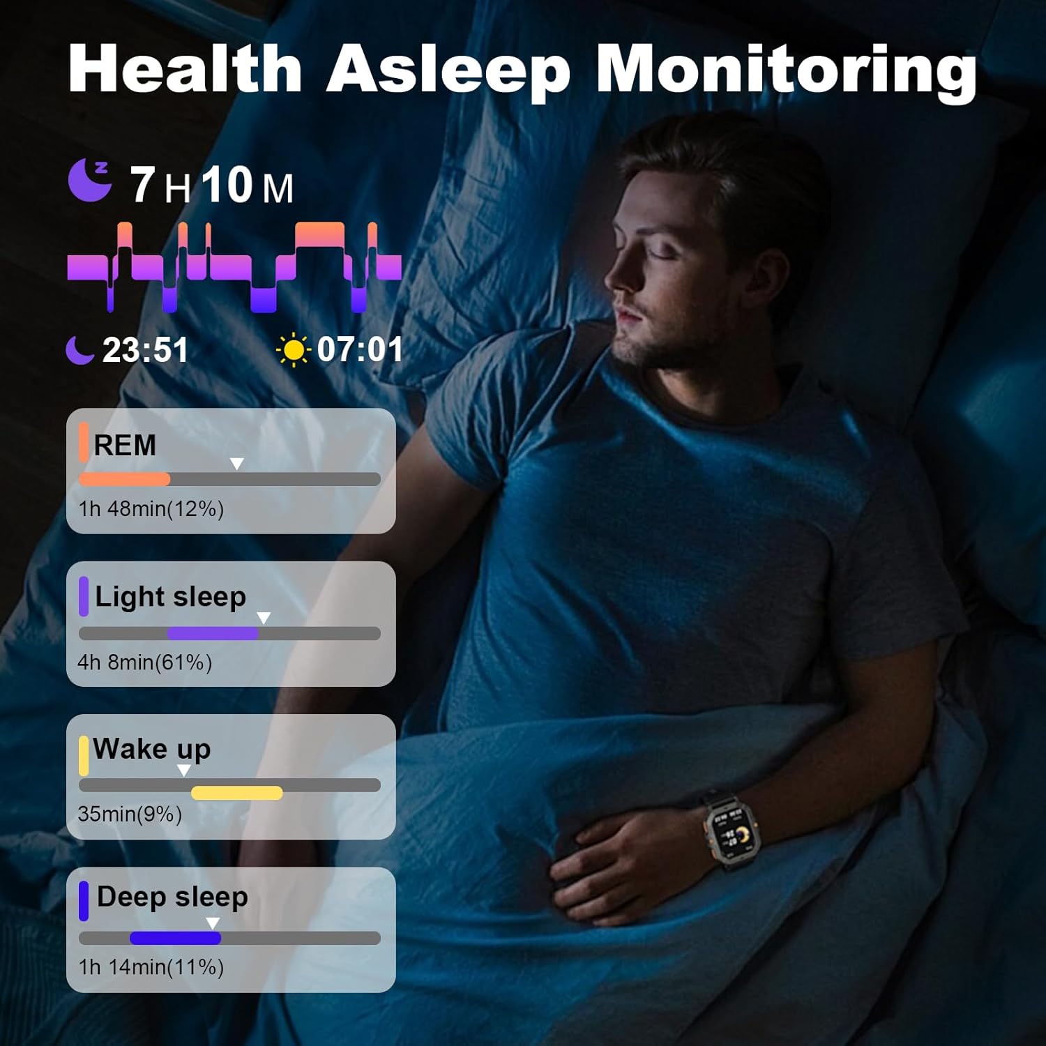 【Smart Watch Suitable for You】Military smartwatches for men compatible with Android 9.0/iOS 9.0 and above. This modern watch for men women comes in a gift box, as a great gift for Birthdays, Christmas, Valentine’s Day, New Year,Anniversary,Mother’s Day,Father’s Day and more.They can wear the smart watch to know their health.