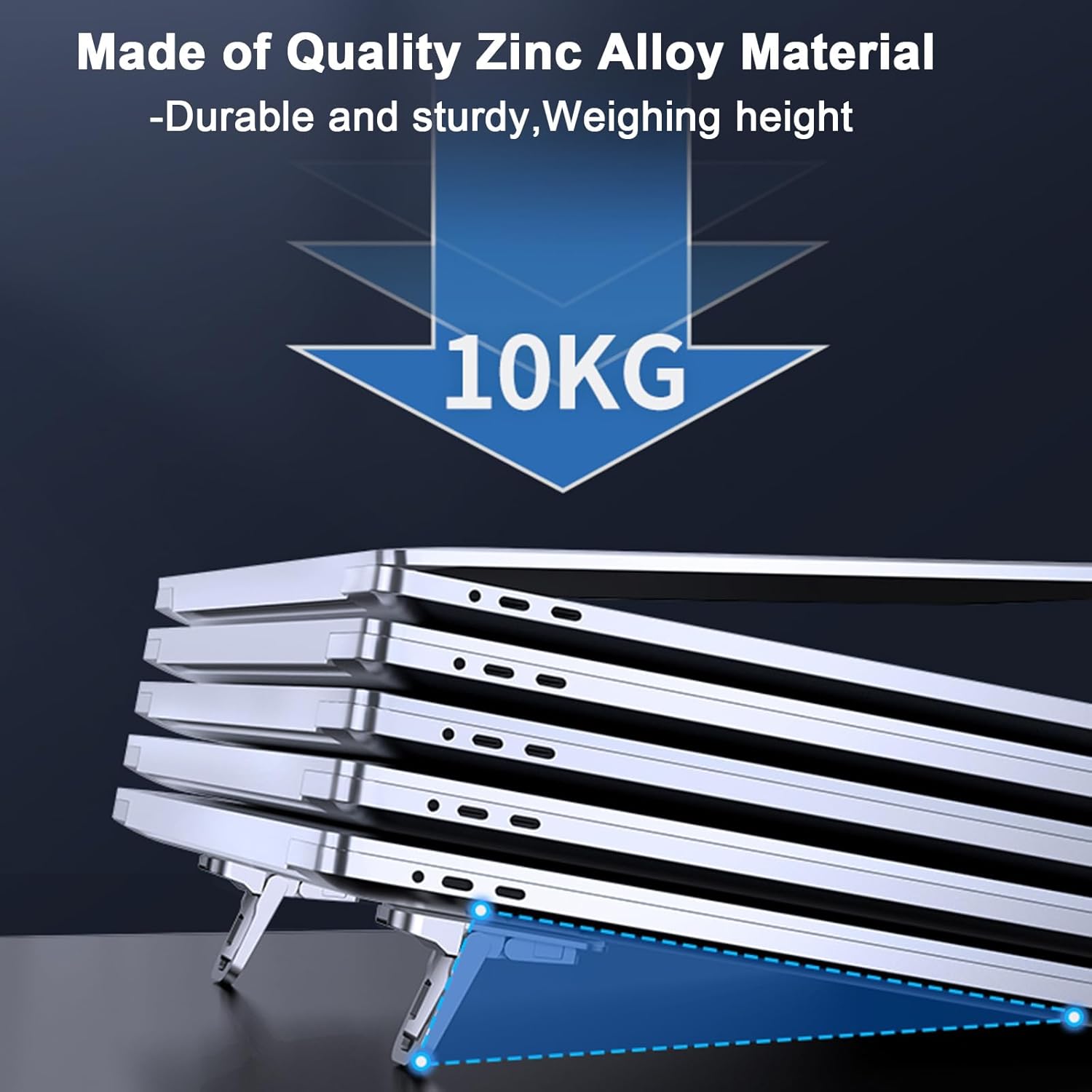 The foldable laptop stand is made of high quality zinc alloy material, which makes it sturdy and durable enough to support the laptop and keyboards.