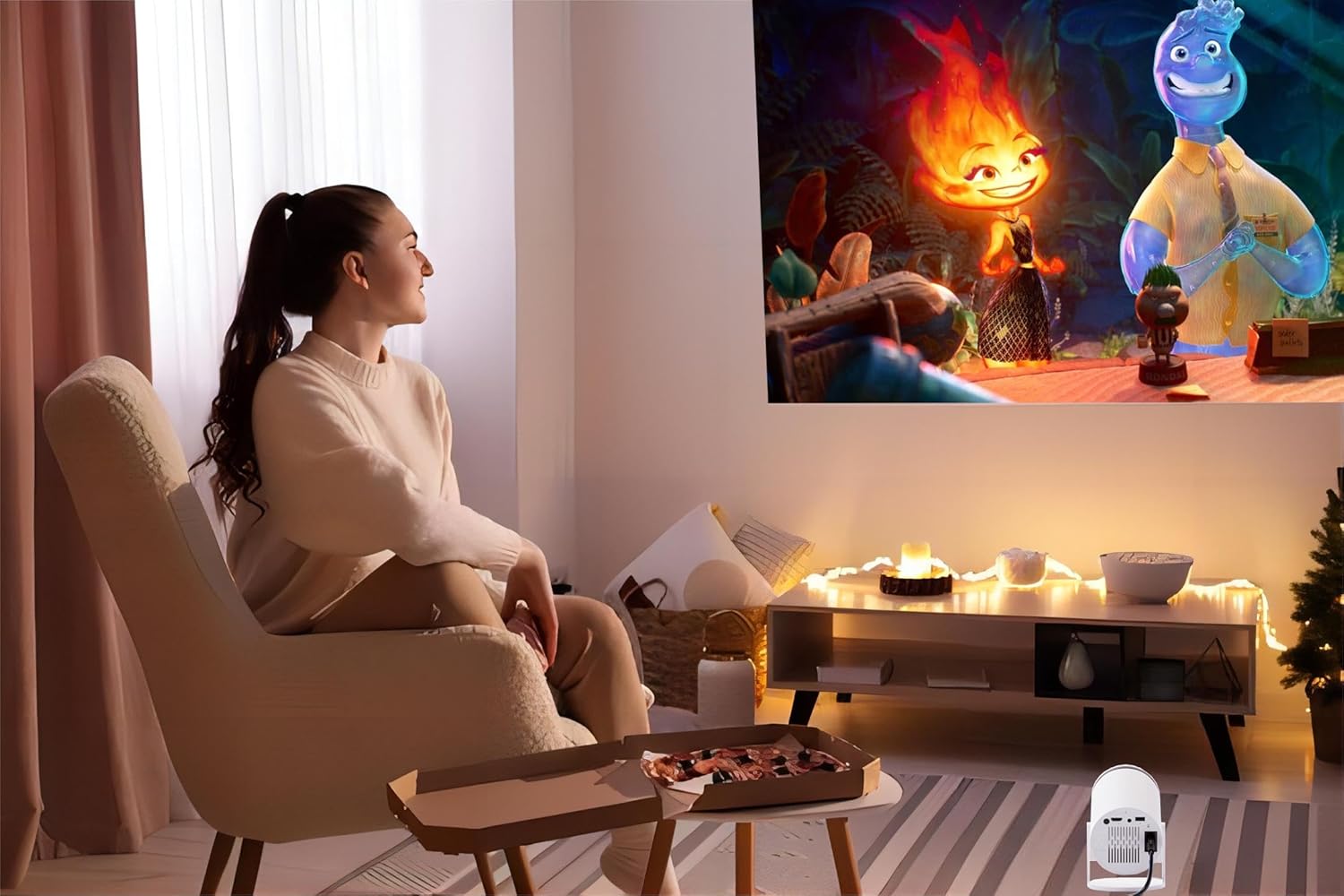 📽️【Amazing 1.5:1 Projection Throw Ratio & Zoom】Whether you’re in a cozy attic, bedroom, RV, or a larger space, this mini projector perfectly adapts to your need. Compared to others, it saves you 1.74 ft of distance for a 100″ screen. Offering a projection size range of 40~100 inches(suggest 80”) with distances from 2ft to 13ft for a versatile viewing experience.