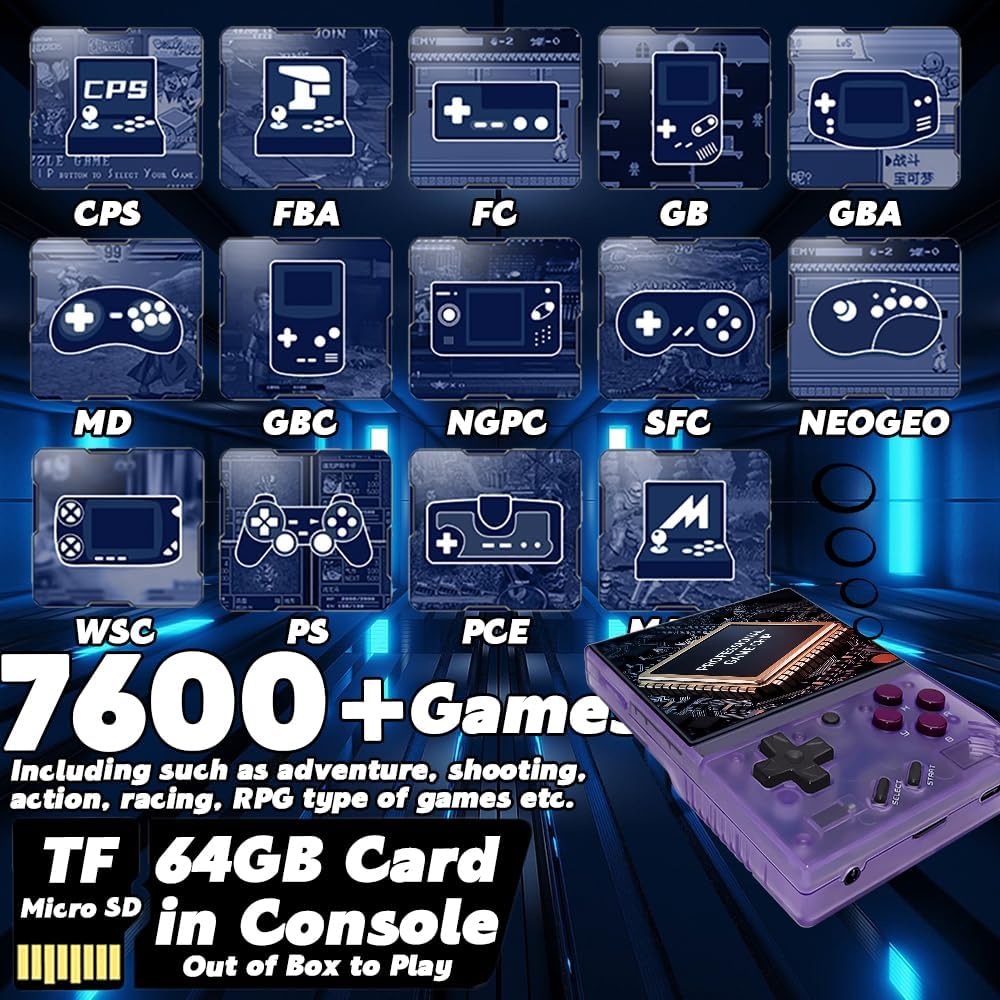 Miyoo Mini + Handheld Game Console Portable Retro Video Games Consoles Rechargeable Hand Held Classic System Transparent GB with Case and Screen Protector