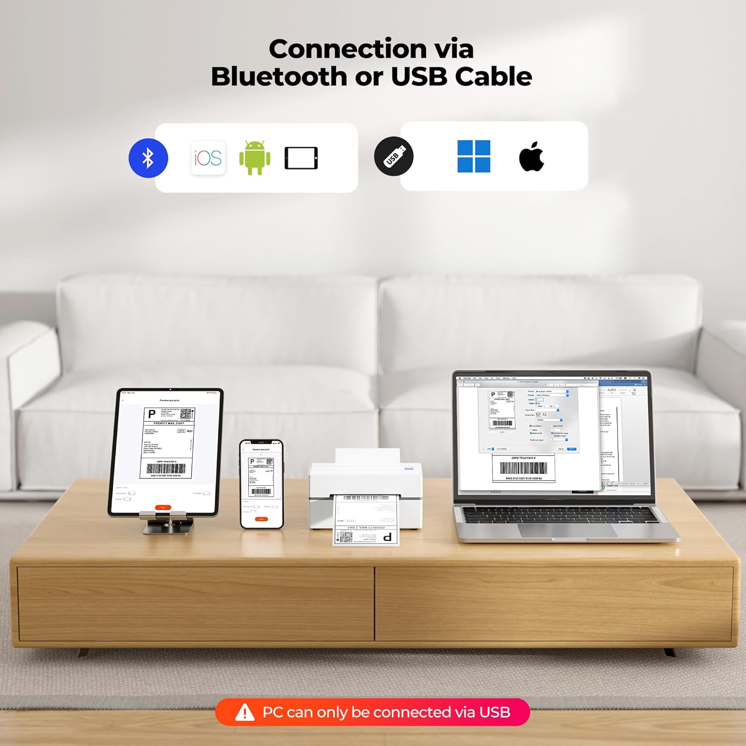 Wide Compatibility: The Bluetooth thermal printer is compatible with eBay, Etsy, Shopify, UPS, and other major shipping and shopping platforms. Suitable for direct thermal labels with widths ranging from 1.57″ to 4.3″, including envelope labels, package labels, address labels, barcode labels, and labels for home and office.