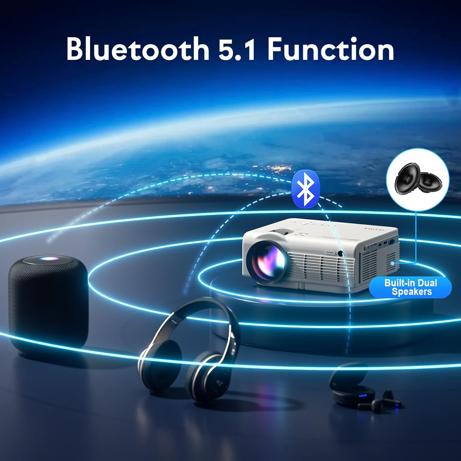 📶Faster 5G WiFi & Bluetooth Connection: Equipped with the latest 2.4G/5G WiFi & Bluetooth Chip, this YEZMEK Native 1080P projector provides not only faster WiFi connection with the most iOS, Android and Windows devices, but also more stable signal transmission channel than other projectors. Meanwhile, it’s also possible to connect Bluetooth soundbar, speaker or earphone to this projector via the Bluetooth function to get a better sound quality for your home theater needs indoors and outdoors.