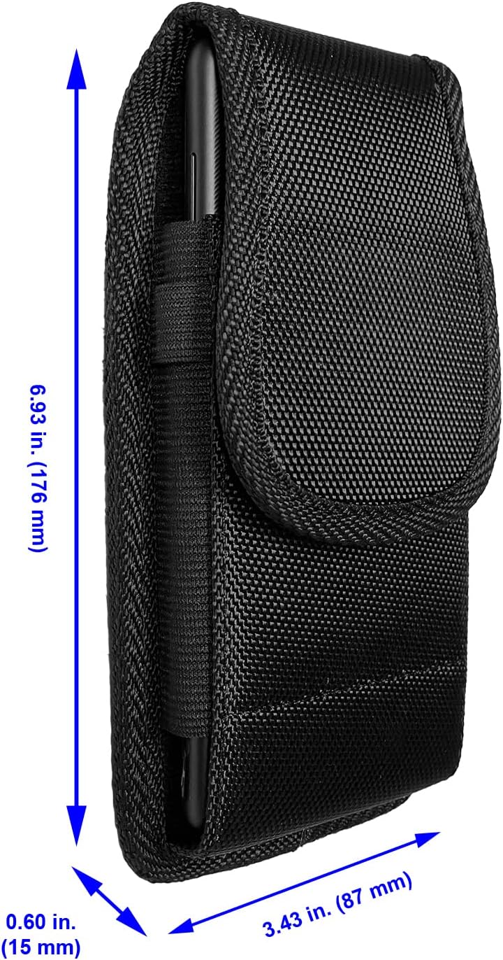 Nylon Cell Phone Holster for Cricket Icon 3, Dream 5G, Ovation 2, AT&T Maestro Max, Radiant Max, Nokia X100, TCL Stylus 5G – Vertical Case Card Slot Carrying Pouch with Belt Clip/Loops, Black