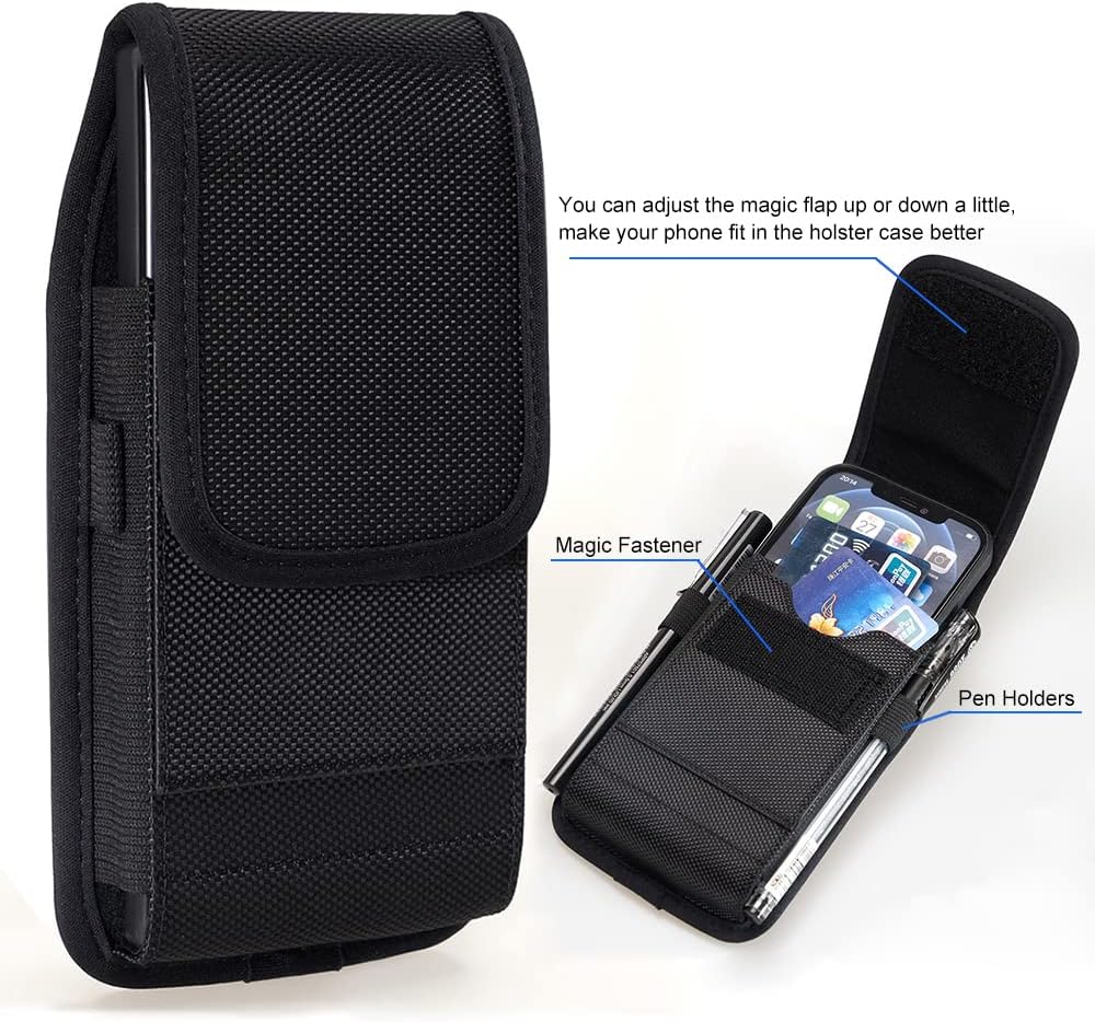 Nylon Cell Phone Holster Pouch Belt Clip Phone Case Holder for Samsung Galaxy A14 A13 A12 A05 A04e A03S A23 S24 Ultra S23Ultra S22 Ultra, Moto G Power 2022 2023 G Play G Pure OnePlus Nord N30 TCL 40XL