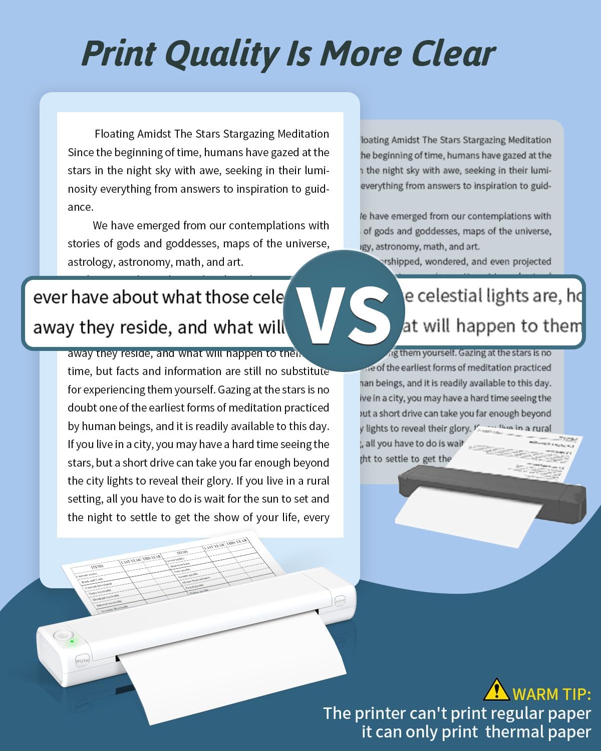 [HOLIDAY GIFT, SATISFIED SERVICE] Exquisite appearance and easy operation make this portable bluetooth printer an ideal holiday or birthday gift, whether it’s for a friend or family member, or a special him/her, it can bring a surprise. And the specialized technical team provides professional technical support via WhatsApp, Skype, email and phone to provide customers with satisfactory service, please feel free to use it.
