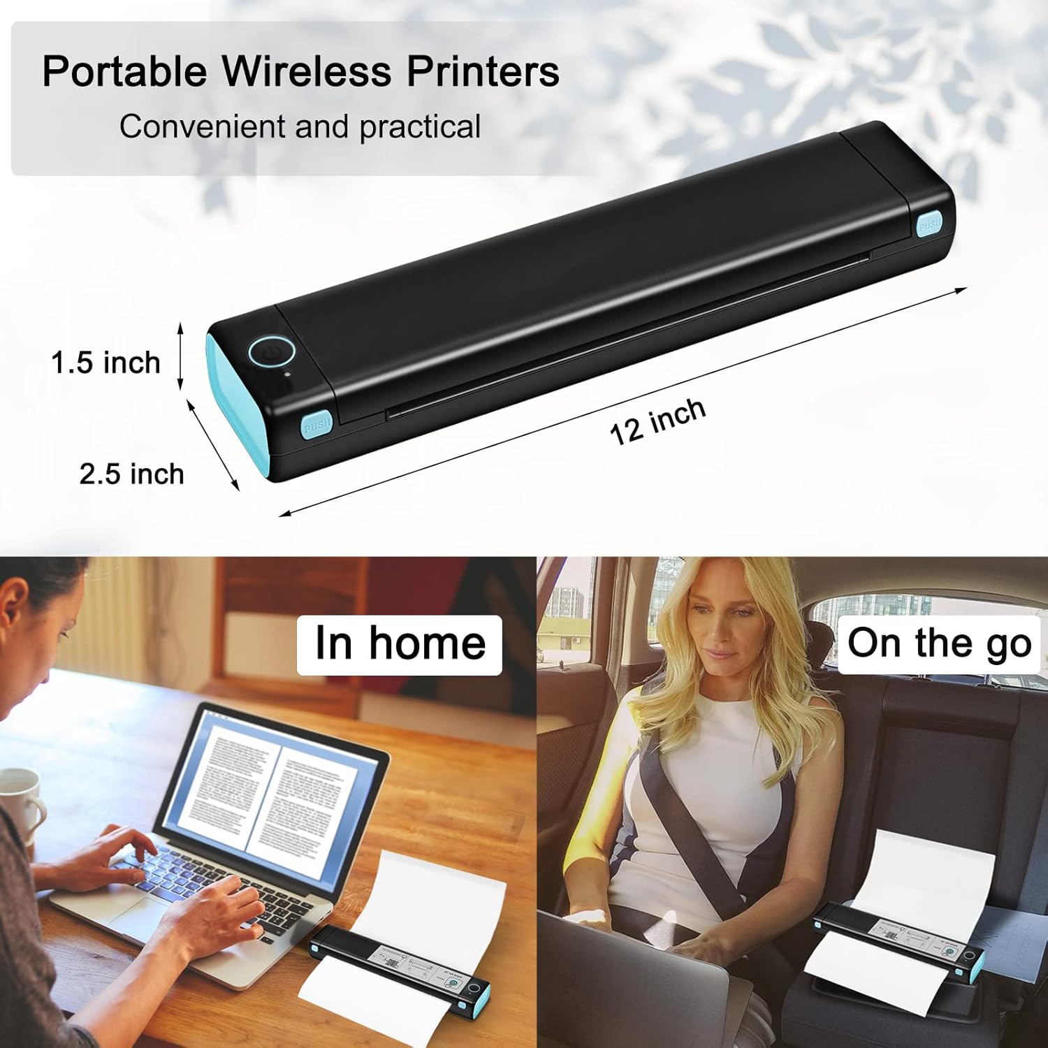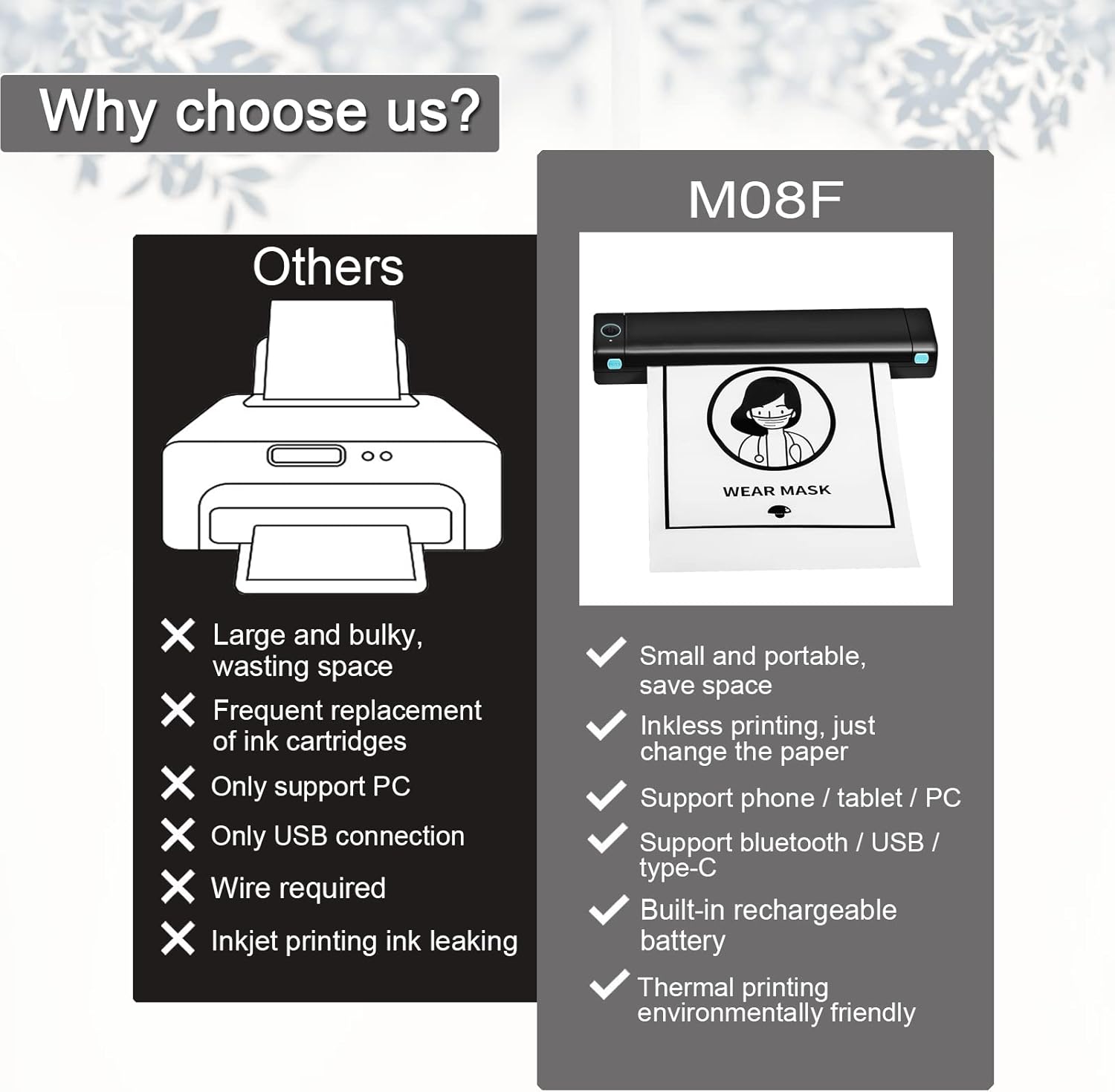 Portable Printers Wireless for Travel – M08F Bluetooth Thermal Mobile Inkless Printer,Support 8.5″ X 11″ US Letter, Compatible with Android and iOS Phone & Laptop