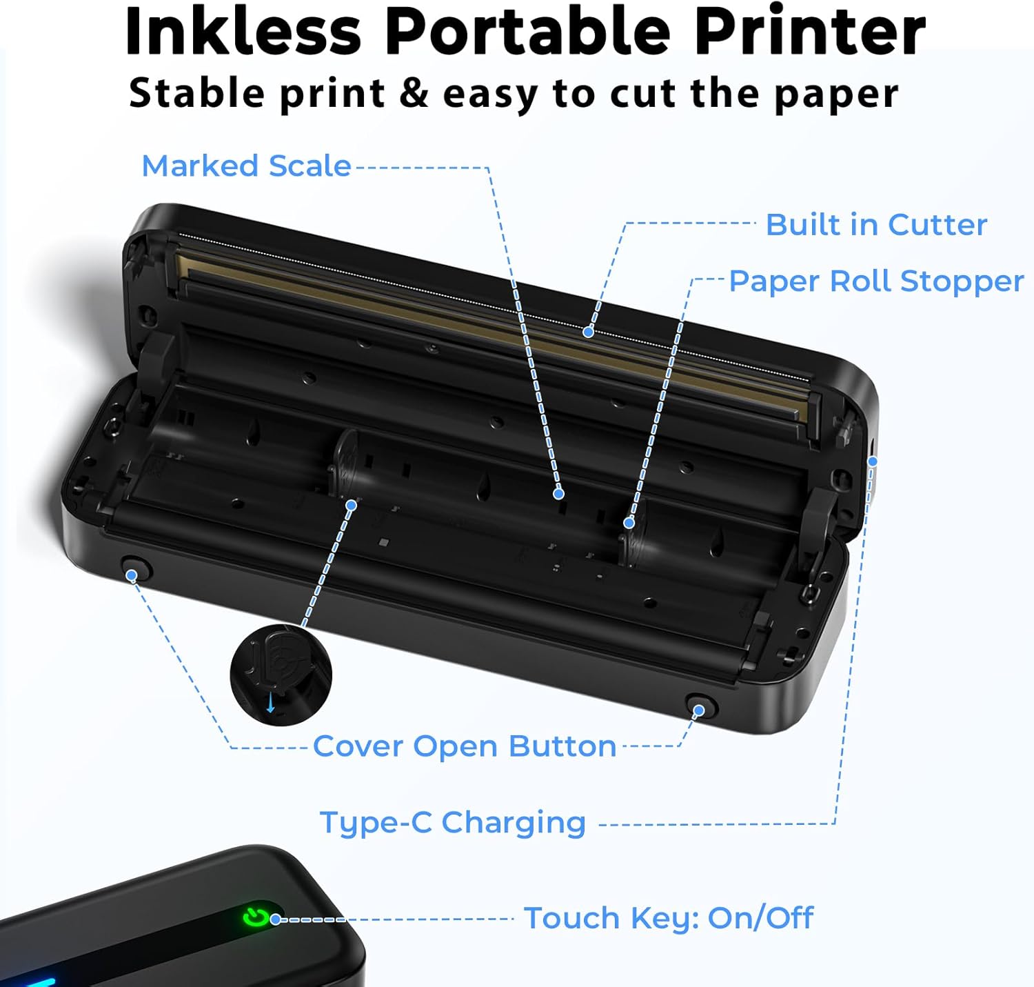 Cost-Effective Inkless Thermal Printer- Our inkless wireless printer bring convenience to your life! No need to use ink, cartridges, toner, etc., will not produce problems such as cleaning and clogging, reducing the cost of maintenance; Only need to use the thermal paper can be easily enjoyed printing!