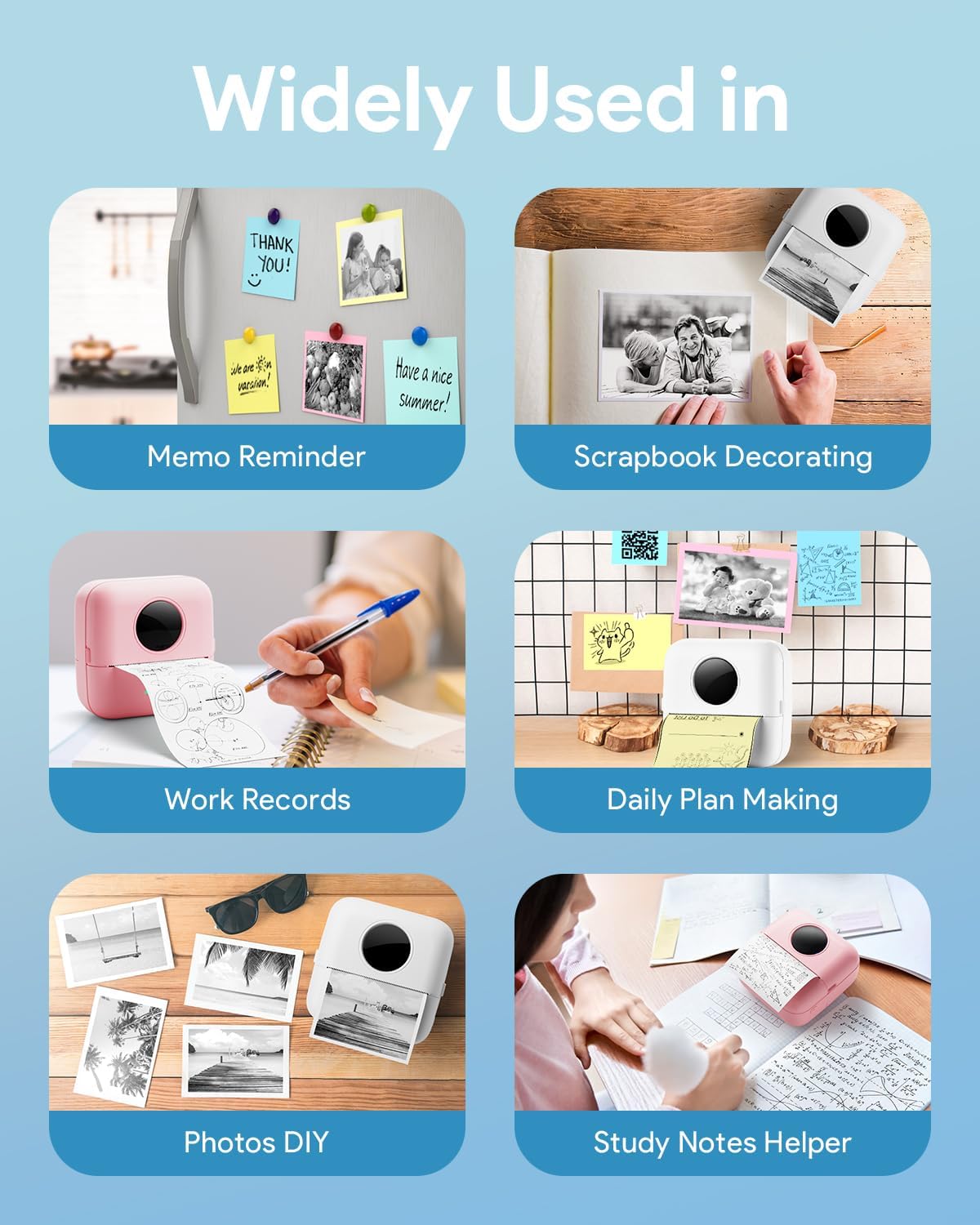 💯2024 LATEST THERMAL PRINTING TECHNOLOGY – Compared to others, our mini sticker printer boasts the latest 200dpi resolution print heads. We aim to faithfully reproduce the original look of photos, even in black and white. Our camera thermal paper, thicker and clearer than regular paper, ensures your creations last. It’s a good scrapbook supplies & office/school supplies