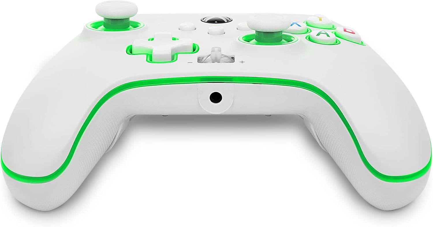 Achieve brilliant gameplay with the amazing PowerA Spectra Infinity Enhanced Wired Controller for Xbox Series X|S. Officially licensed by Xbox, this one-of-a-kind gamepad gives you brilliant power and LED customization. Dial-in your favorite color combination with vivid colors, a range of shades, across three distinct Spectra Zones. Plus, super-cool LED effects enable “Breathing” or “Solid” Modes. Of course, you’ll gain a competitive advantage with pro-style features like two mappable buttons you can program on-the-fly, and three-way trigger locks for super-precise throws. A 3.5mm stereo audio jack with one-touch mic mute, and an easy-to-use Share Button help you stay connected with fellow gamers. Powerful dual rumble motors give you an incredibly immersive gaming experience that you can feel.