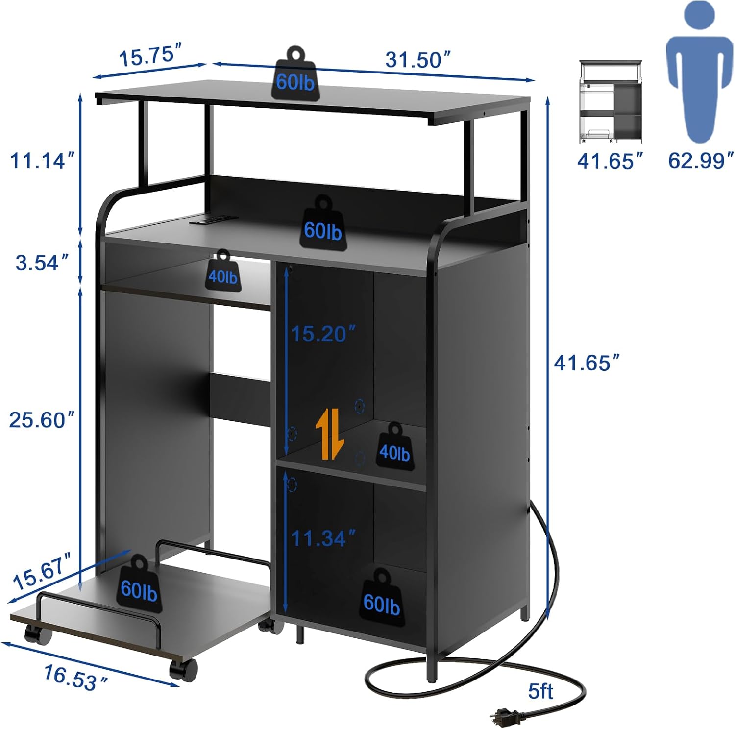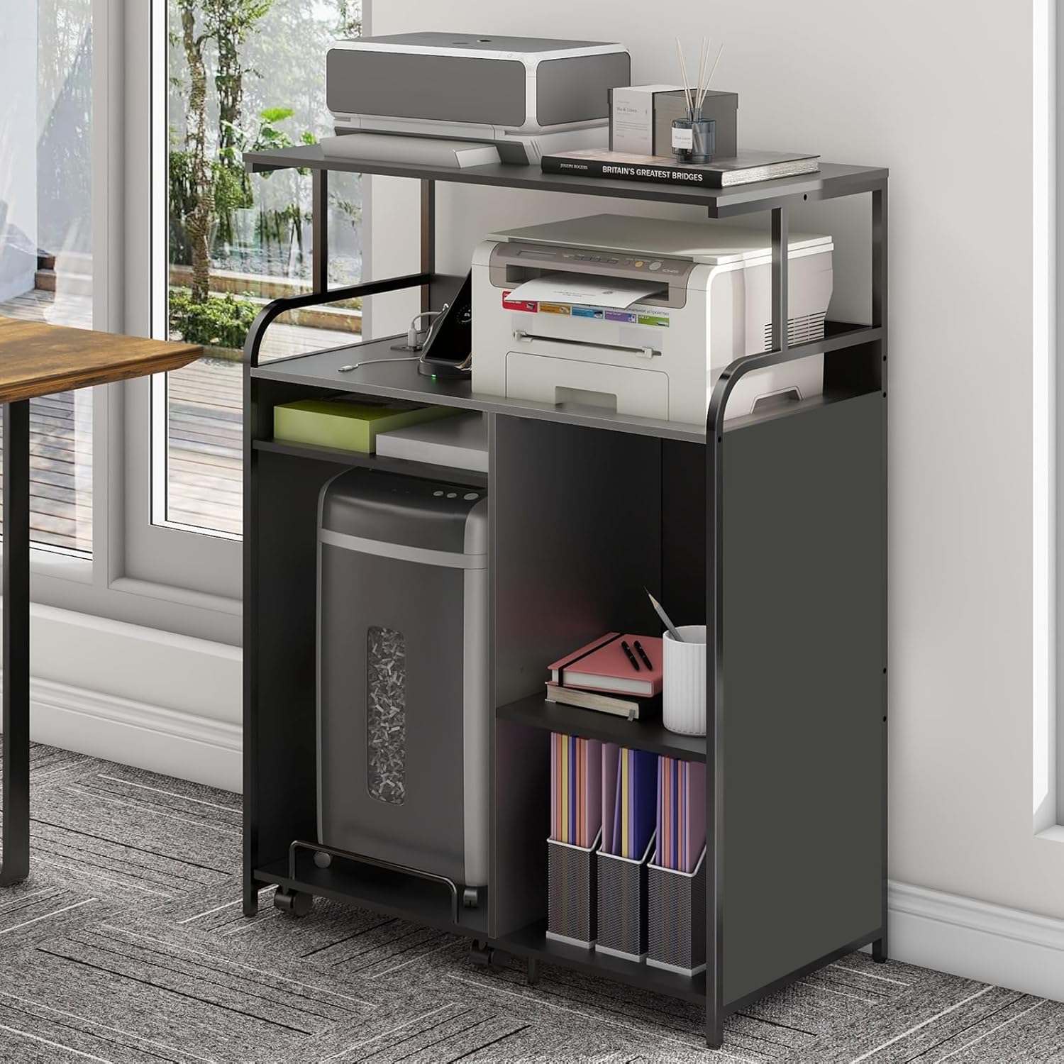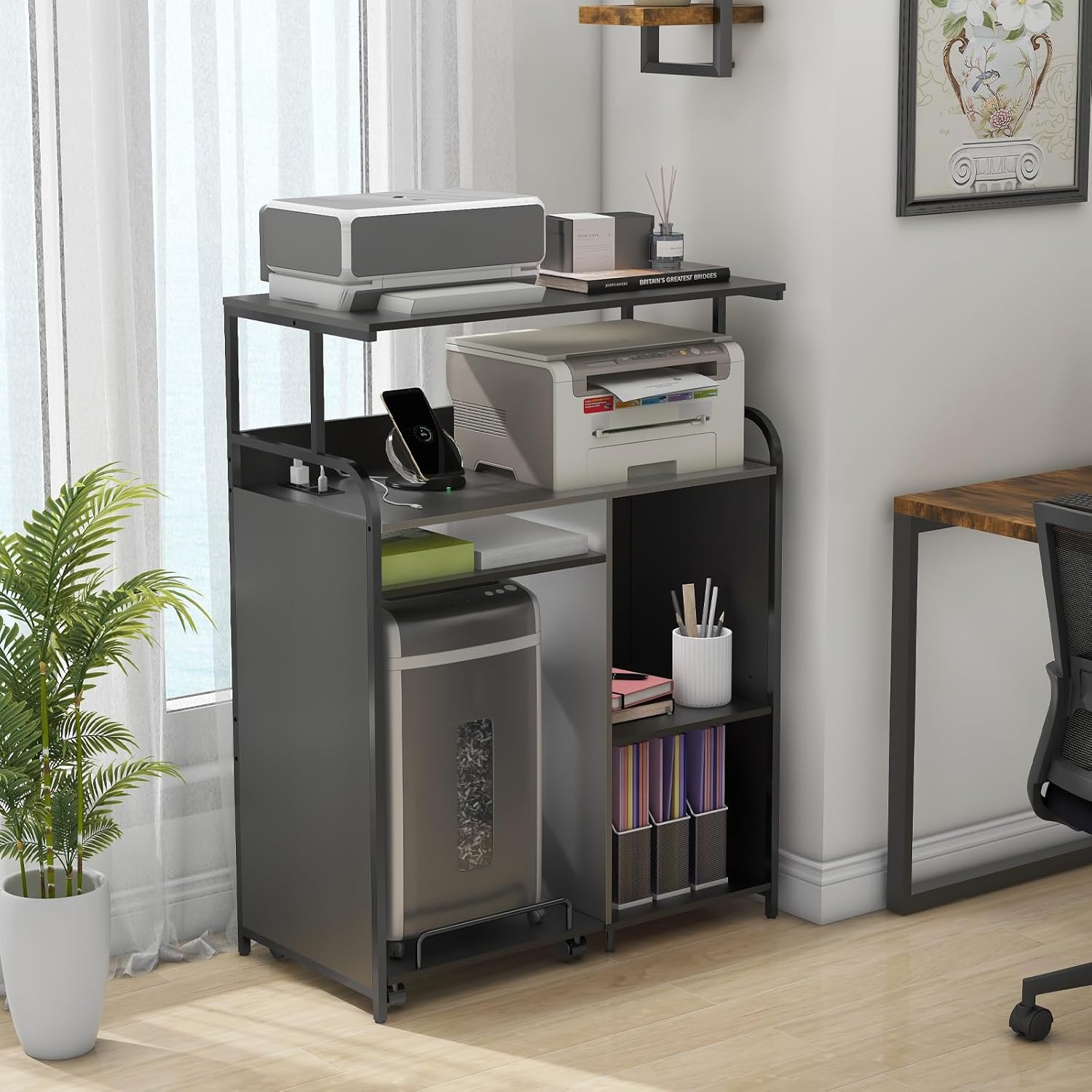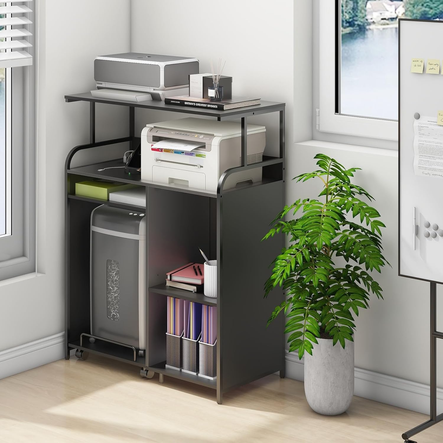 Color Black Material Premium Engineered Wood with Metal Frame Product Size 31.5″L x 15.75″W x 41.65″H Application Scenes Home Office, Classroom, Study Room, Living Room, Bedroom Features 4-Tier Large Printer Table, Shredder Stand On Wheel, Dedicated Space for Printing Paper, Adjustable Storage Shelf Package 1 x Printer Stand, 1 x Charging Station, 1 x Accessories, 1 x Assembly Instructions
