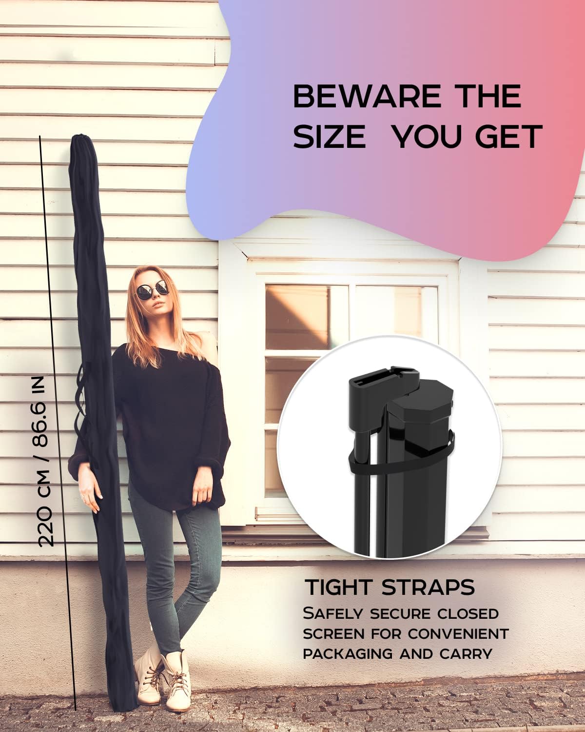 Indoor Outdoor projection movie screen is secured by convenient tight-straps, it could be carried to backyard or auditorium in a perfectly fitted projector screen bag, its retractable and adjustable design can be easily assembled in 3 steps