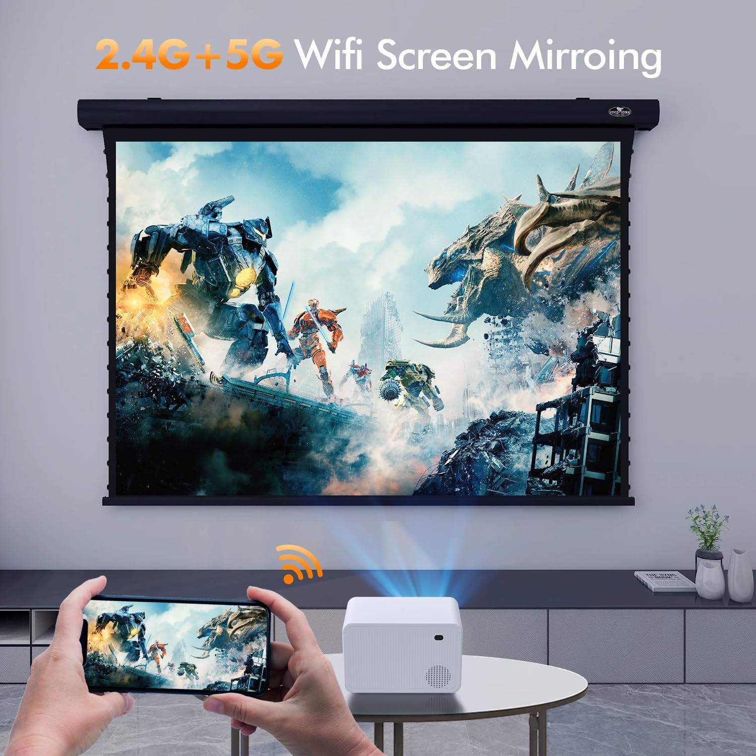 Projector with WiFi and Bluetooth, CoolEeve Portable Projector Outdoor 12000L, Mini Projector Support 4K Native 1080P Video Movie Projector, Compatible with iOS & Android Phone HDMI,VGA,USB,AV