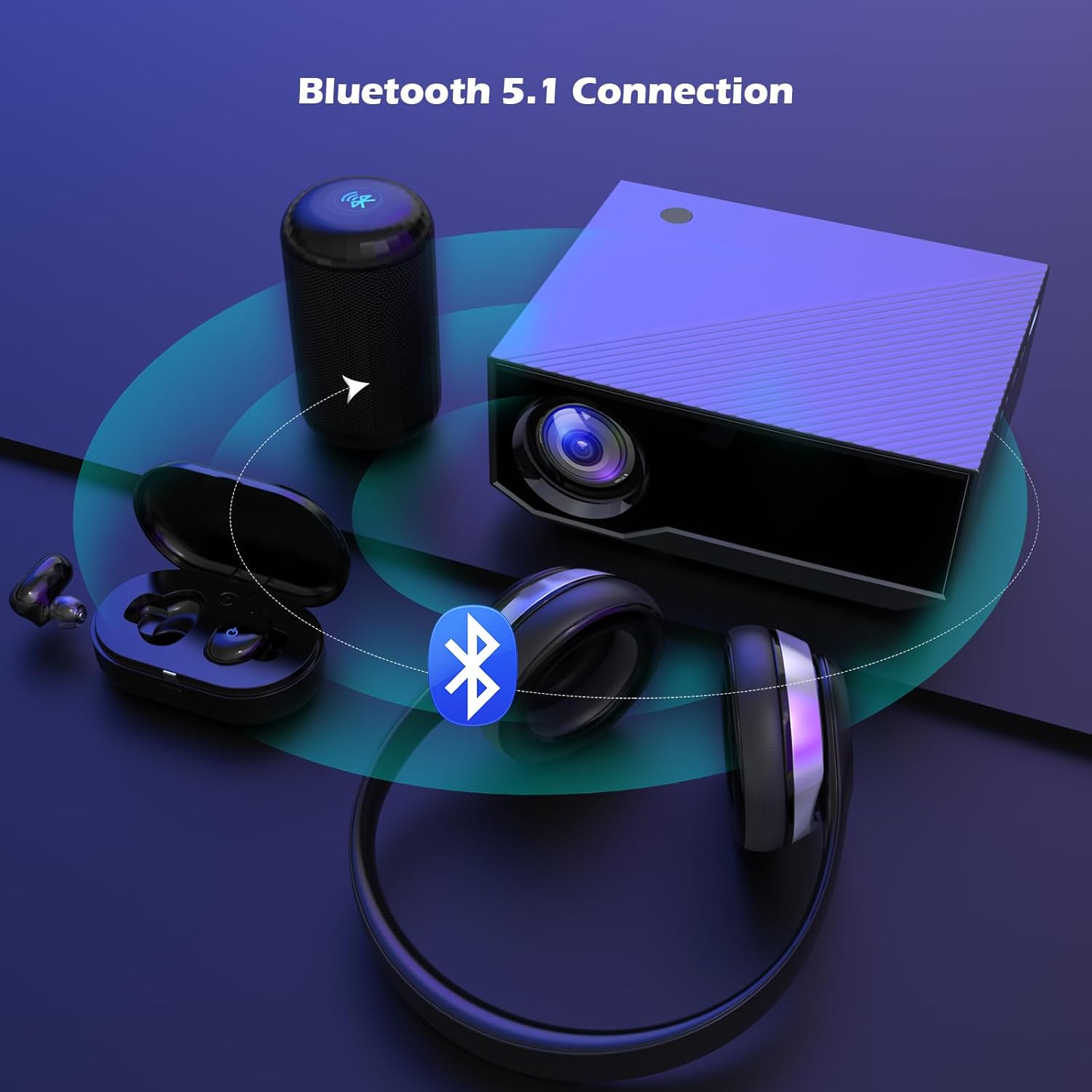 ★【Newest Wifi and Bluetooth Projector for 2024】 Users can use wifi, bluetooth, HDMI cable, or other cables for wireless or wired projection. Wifi or wired connection can be use for projection and pictures or videos. The projector has inner stereo speakers, but if you pursue for better sound effect, you can connect earphone or speaker to the projector though bluetooth.