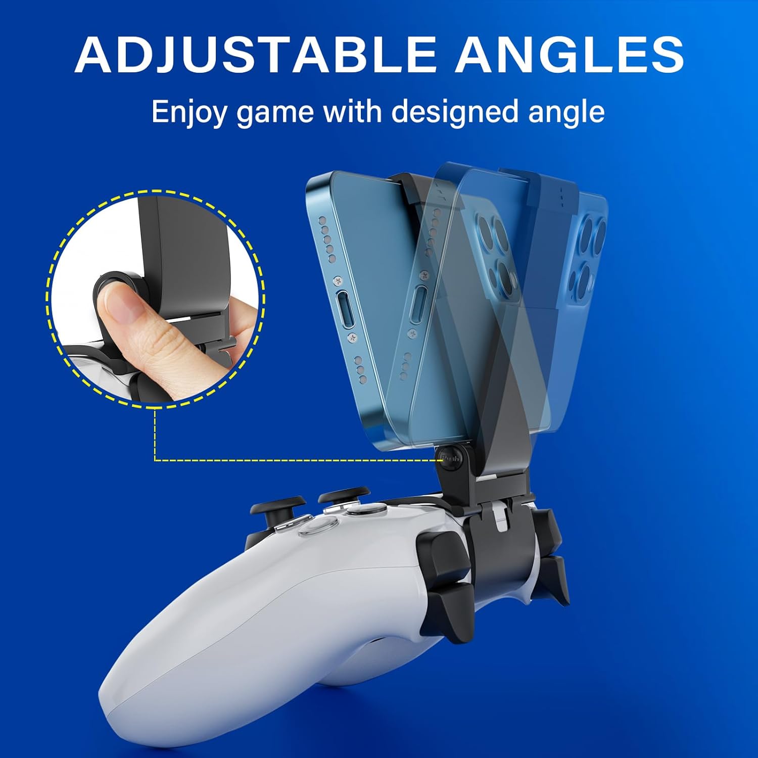 🎮【STRONG GRIP CLIPS】The PS5 phone gaming controller can be securely fixed with the high-quality material and completely closed lock structure, eliminating concerns about accidental falls. Additionally, the lower clamp features a buckle that prevents the ps5 mount from sliding during gameplay of phone remote control.