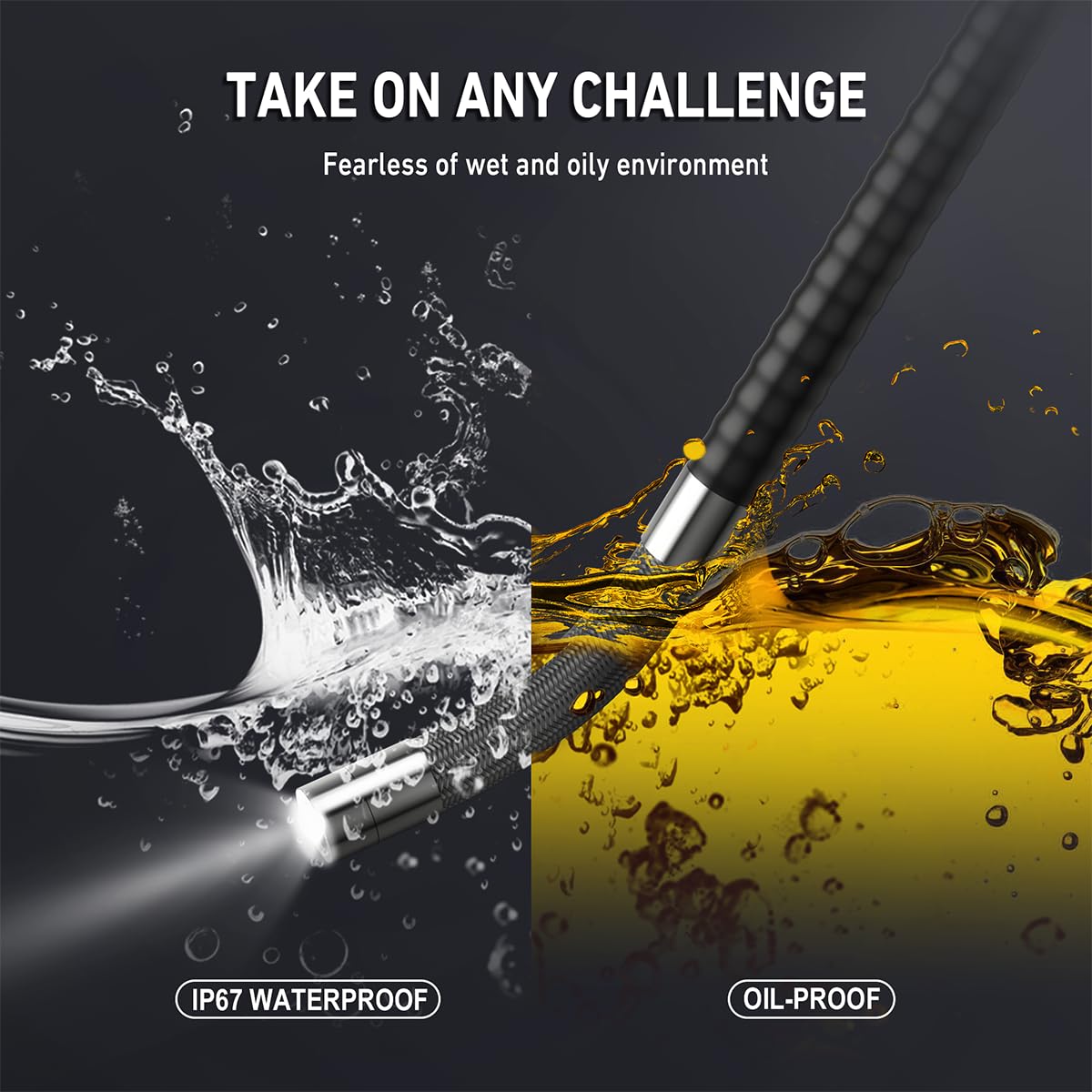 🏆【Durable Industrial Snake Camera】Equipped with 10 high-visibility LEDs, our 1080P borescope guarantees a clear view in challenging conditions such as wet or dark areas. The 4 adjustable brightness settings cater to diverse needs, ensuring the clearest image quality. Besides, our borescope incorporates an intelligent temperature detection system within the lens. If the temperature surpasses 203℉/95℃, the system promptly disconnects from your device, preventing potential damage.