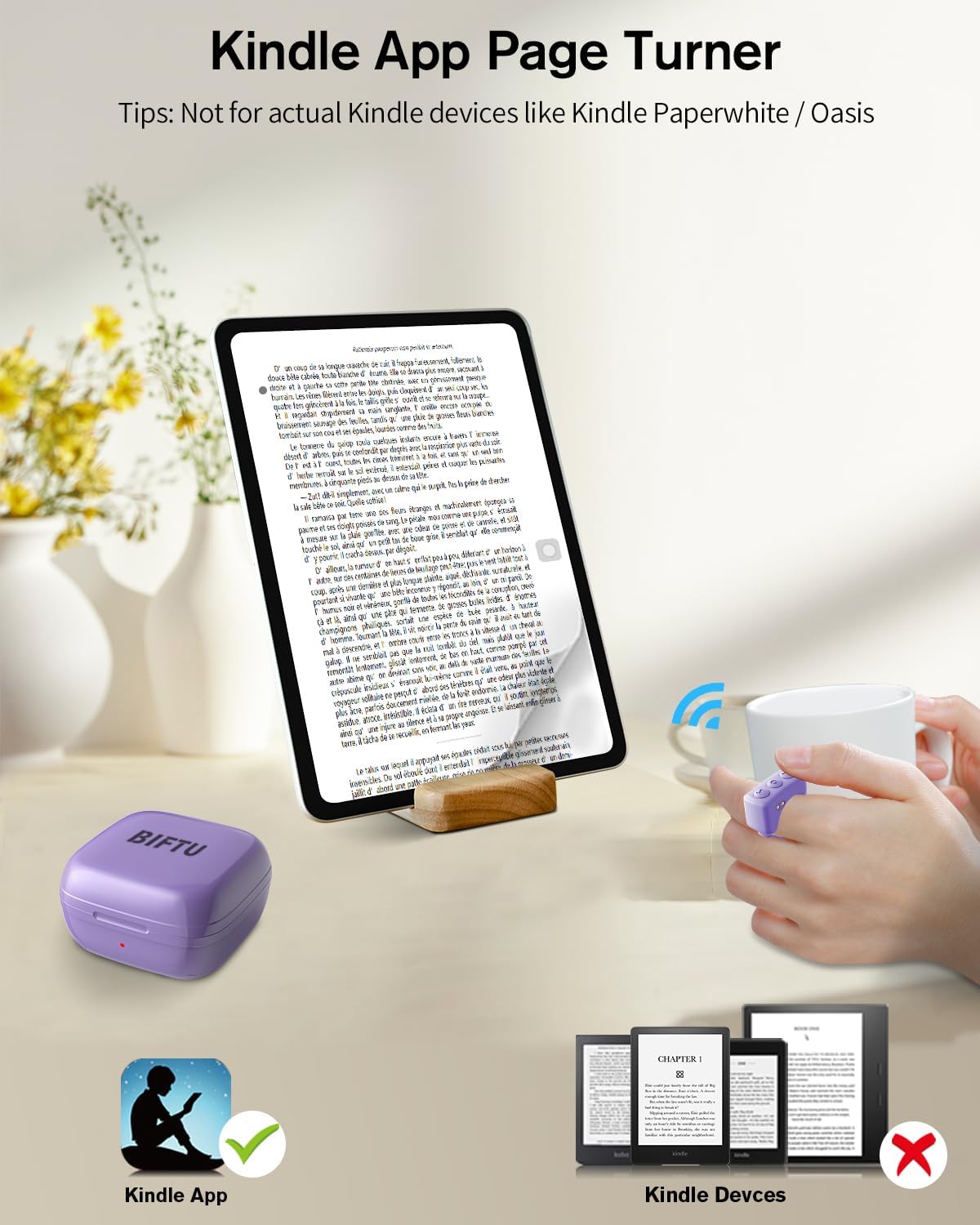 【Page Tuner for Kindle App】Experience the ultimate convenience! BIFTU remote page turner lets you effortlessly flip pages while lying in bed. Just press the button—no need to touch the screen. A must-have for book lovers and those with hand discomfort. In winter, keep your hands warm and enjoy page-turning without exposing hands to cold. Note: Designed for reading apps, not for Kindle devices like Paperwhite or Oasis.