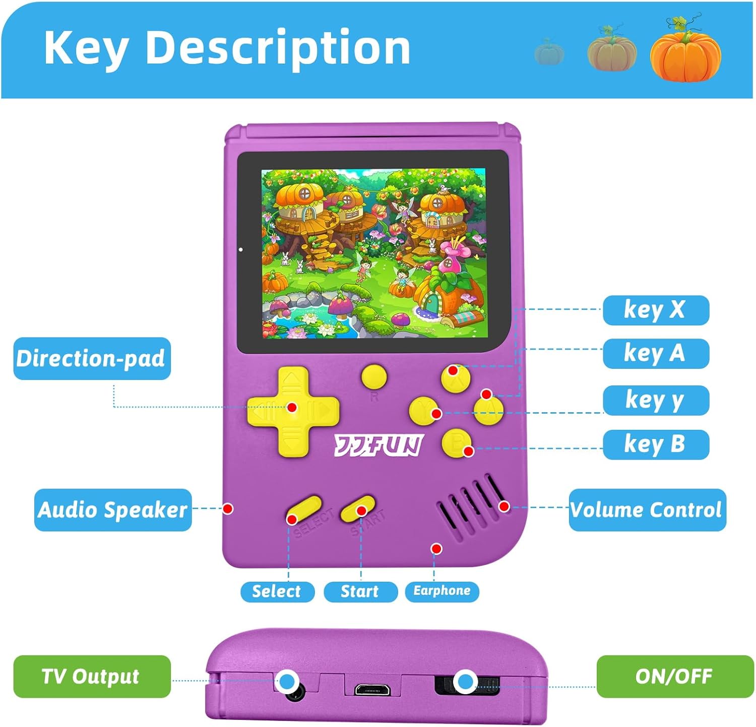 Support TV output: Equipped with an AV output cable, connect to TV and enjoy playing games on the big screen!