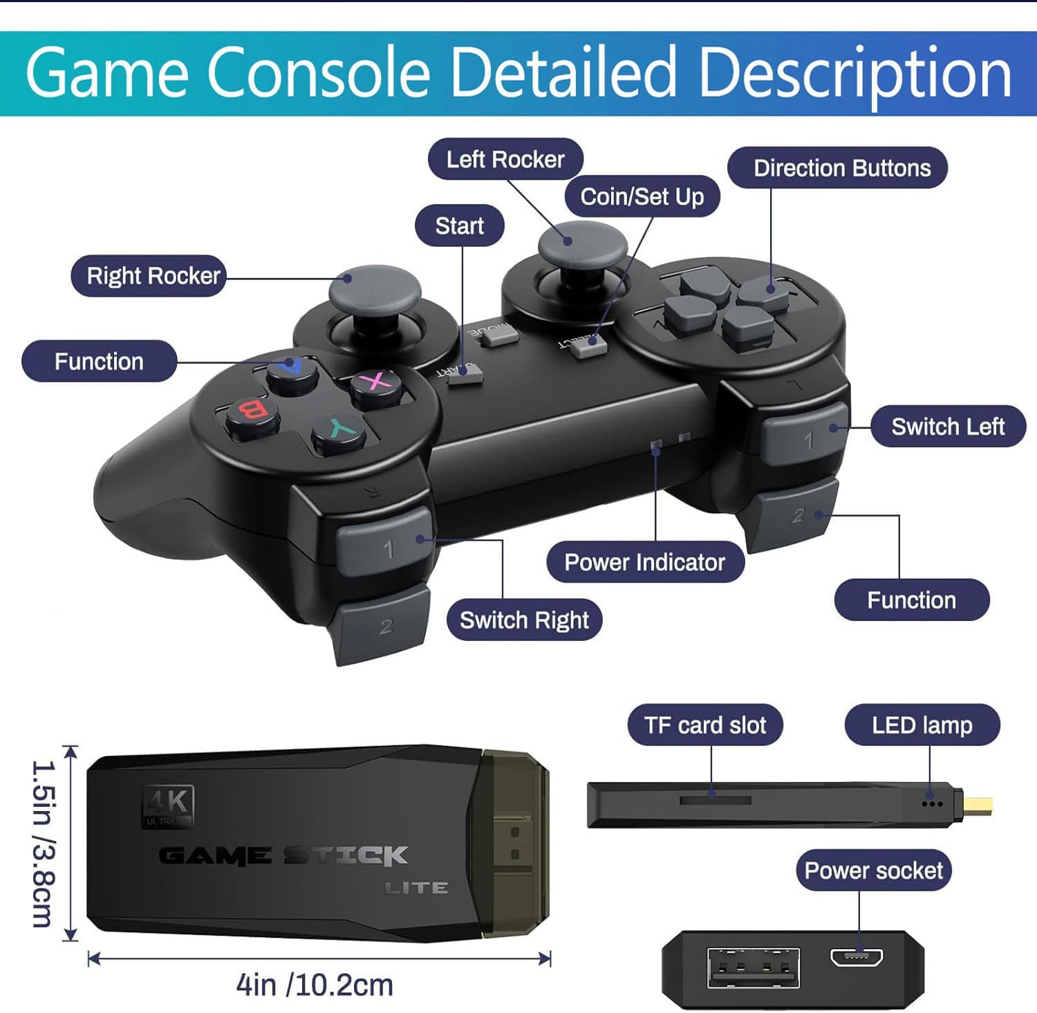 Retro Video Game Console, 2024 Upgraded Model Game Stick with 128G Card, Built-in 20000+ Classic Retro Games, Play and Plug Video Game Stick, HDMI Output for TV, Gift for Kids Adult