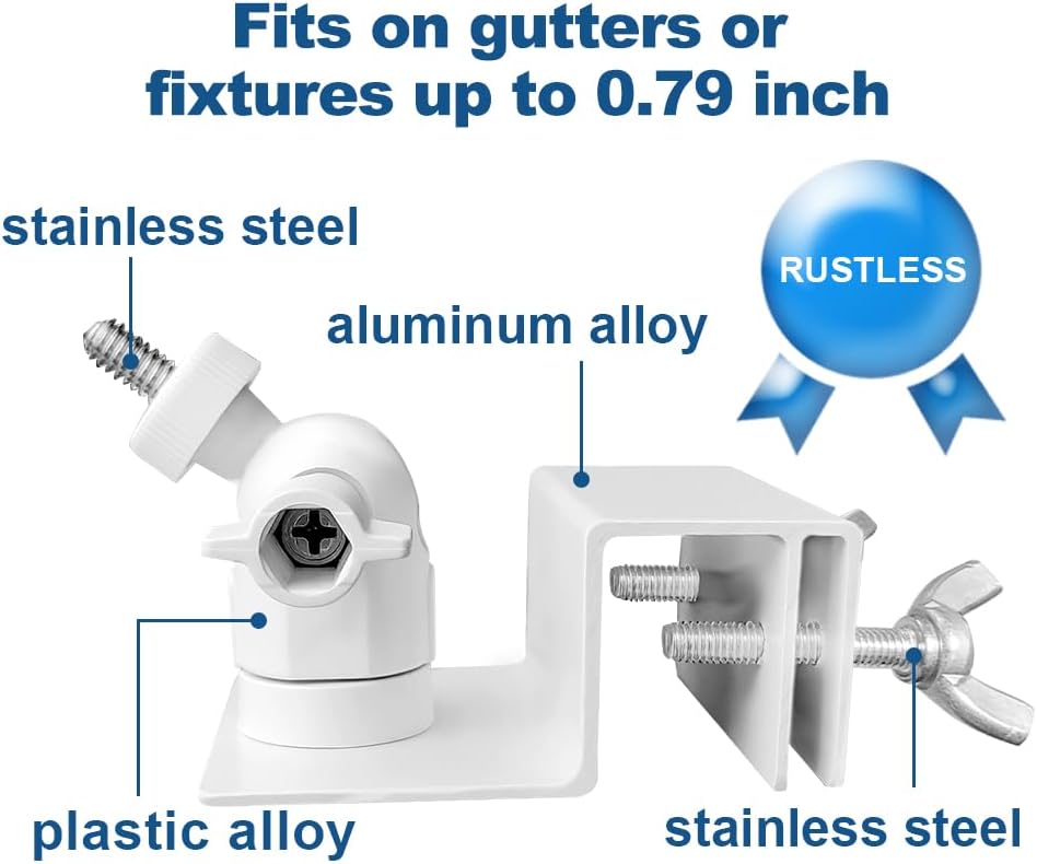 【Rustproof and Stable】Constructed with high-quality aluminum alloy, stainless steel, and plastic alloy, our Gutter Mount can withstand harsh weather conditions. There’s no need to worry about realigning your camera or the risk of it falling off
