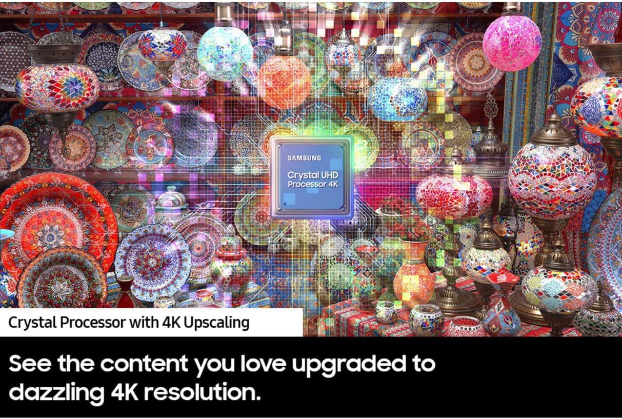 CRYSTAL PROCESSOR W/ 4K UPSCALING: Watch the content you love upgraded to dazzling 4K resolution; You’ll be able to better enjoy your TV’s capabilities as the Crystal Processor automatically transforms color, sound and more. Compatible With: Netflix, YouTube, Disney+, Hulu, Apple TV+, HBO Max, Amazon Video, Samsung TV Plus, Spotify, Sling TV.