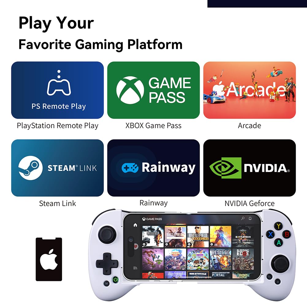 ☁️ 【Compatible with Cloud /Mobile / Emulators Gaming】PS Remote Play, Xbox Game Pass Ultimate, Steam Link, GeForce NOW; Apple Arcade and MFi games & hundreds of popular mobile games including Fortnite, Minecraft, Genshin Impact, Brawlhalla, Asphalt 9: Legends, Cyberpunk 2077, Destiny 2, Gear 5 and Halo Collection emulators, & many more.