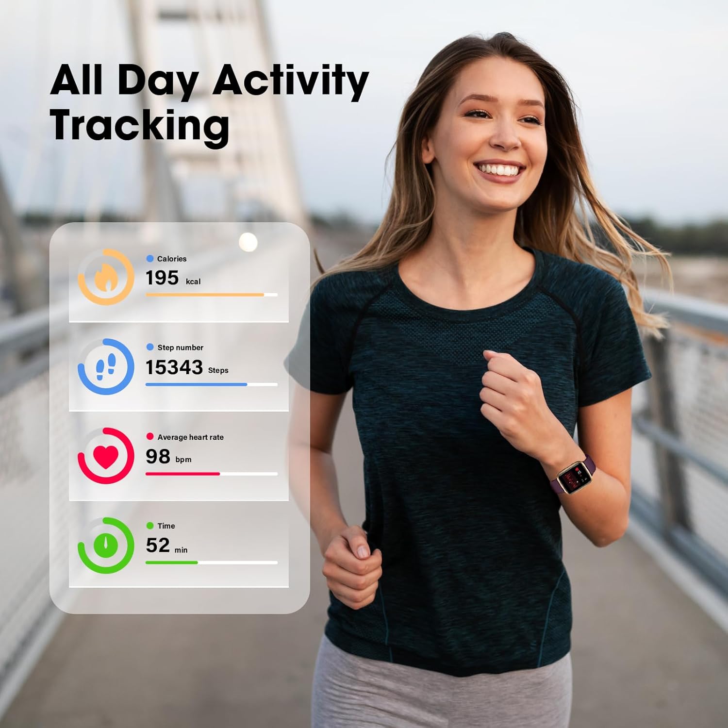 【All-Day Activity Monitoring Tracker】With modes for walking, running, cycling, yoga, and others, this watch accurately tracks steps, calories, distance, and active minutes throughout the day.