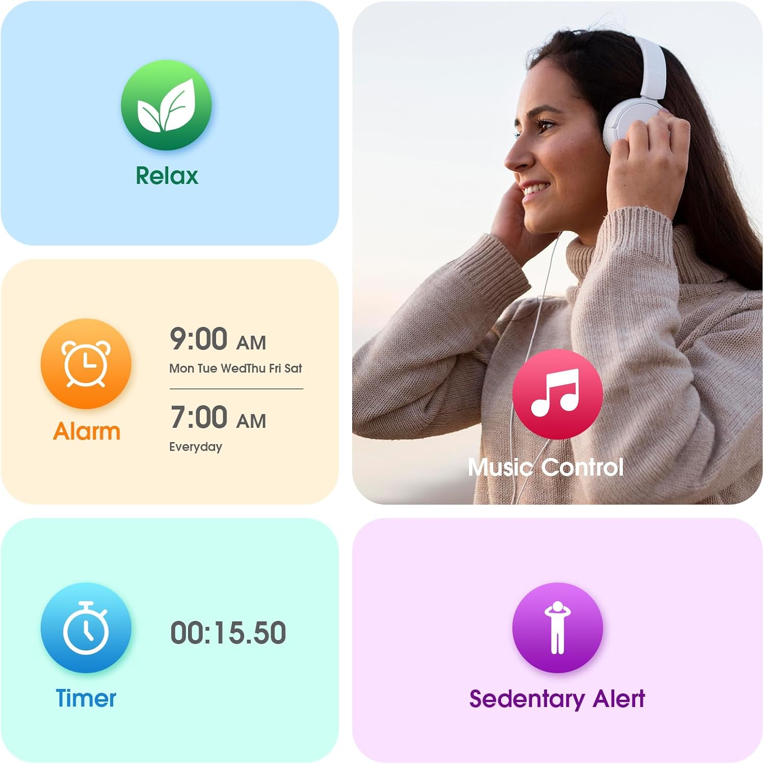 【Heart Rate, Oxygen, and Sleep Monitor】Our fitness watch tracks your health non-stop, capturing real-time heart rate and sleep patterns (deep, light, and wake phases). It analyzes sleep quality and includes a blood oxygen saturation feature for a comprehensive understanding of your well-being.