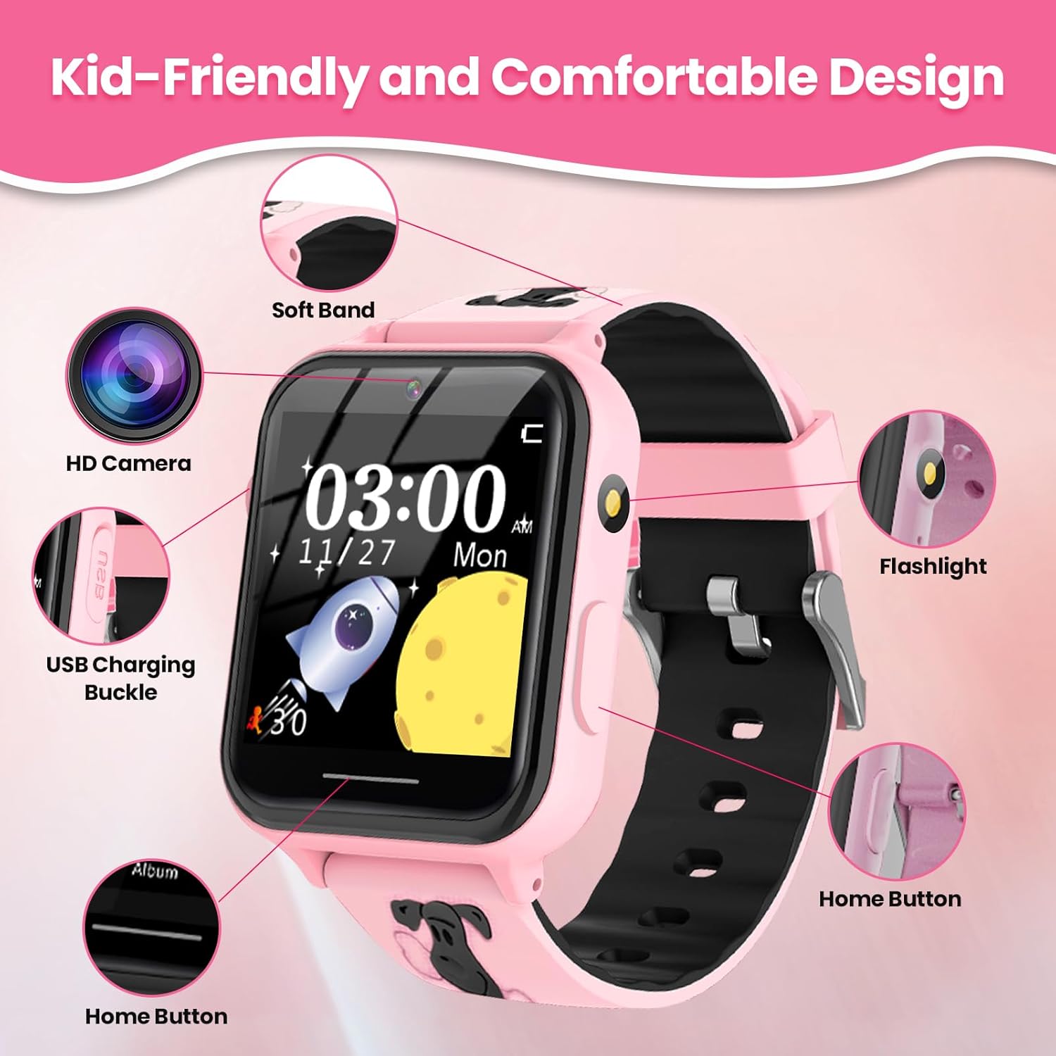 ใ€Multi-Function Kids Smart Watchใ€‘โœจ๐ŸŽ‰ This kids smart watch is more than just a watch! It’s like a mini superpower on your child’s wrist! With a camera ๐Ÿ“ธ, MP3 player ๐ŸŽต, video recording ๐ŸŽฅ, pedometer ๐Ÿƒโ€โ™€๏ธ, voice recorder ๐ŸŽ™๏ธ, games ๐ŸŽฎ, alarm clock โฐ, and more, it’s a dream come true for tech-savvy kids! This adorable and easy-to-use smart watch is the perfect birthday gift for your little one! ๐ŸŽ๐Ÿ’–