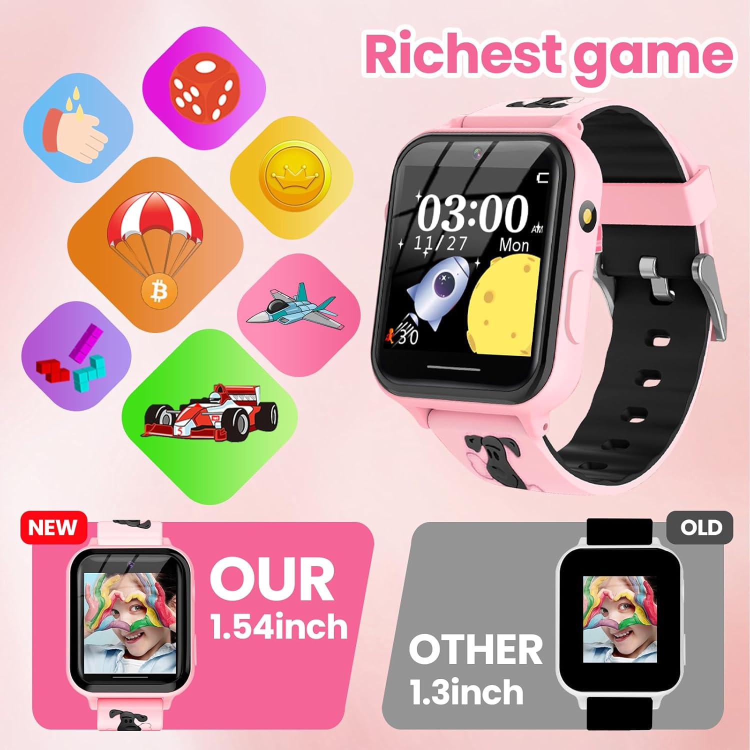 ใ€Perfect Gift for Girlsใ€‘๐ŸŽ๐Ÿ’ This kids smart watch is designed to be the perfect gift for girls aged 6-10! With its vibrant 1.54-inch color touchscreen, it’s easy for them to navigate and use. Whether it’s for a birthday, Christmas, or any special occasion, this cute and functional smart watch will bring a big smile to your little girl’s face! ๐ŸŽ€๐Ÿ˜