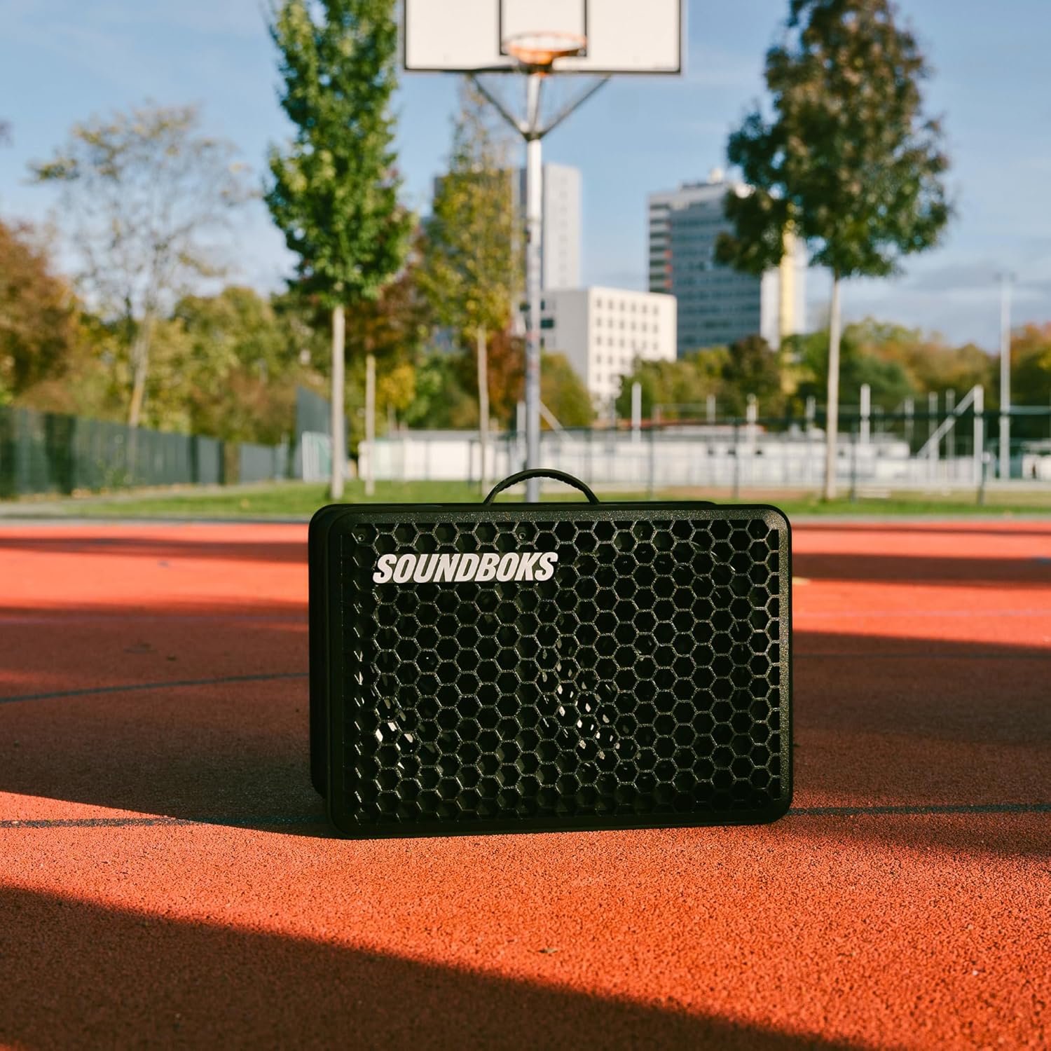 SOUNDBOKS Go – Portable Bluetooth Speaker – Compact Performance Speaker for On The Go – Splashproof and Shockproof – 40 Hour Runtime – 121dB (Black)