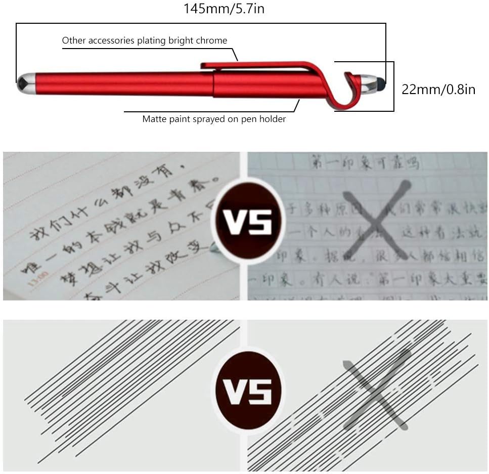 【3 in 1 Multifunctional】One side of this touch screen pens is a replaceable ballpoint pen, the other side is a capacitive stylus. The detachable pen cap is a simple mobile phone holder, which with a clip design, so easy to carry out.