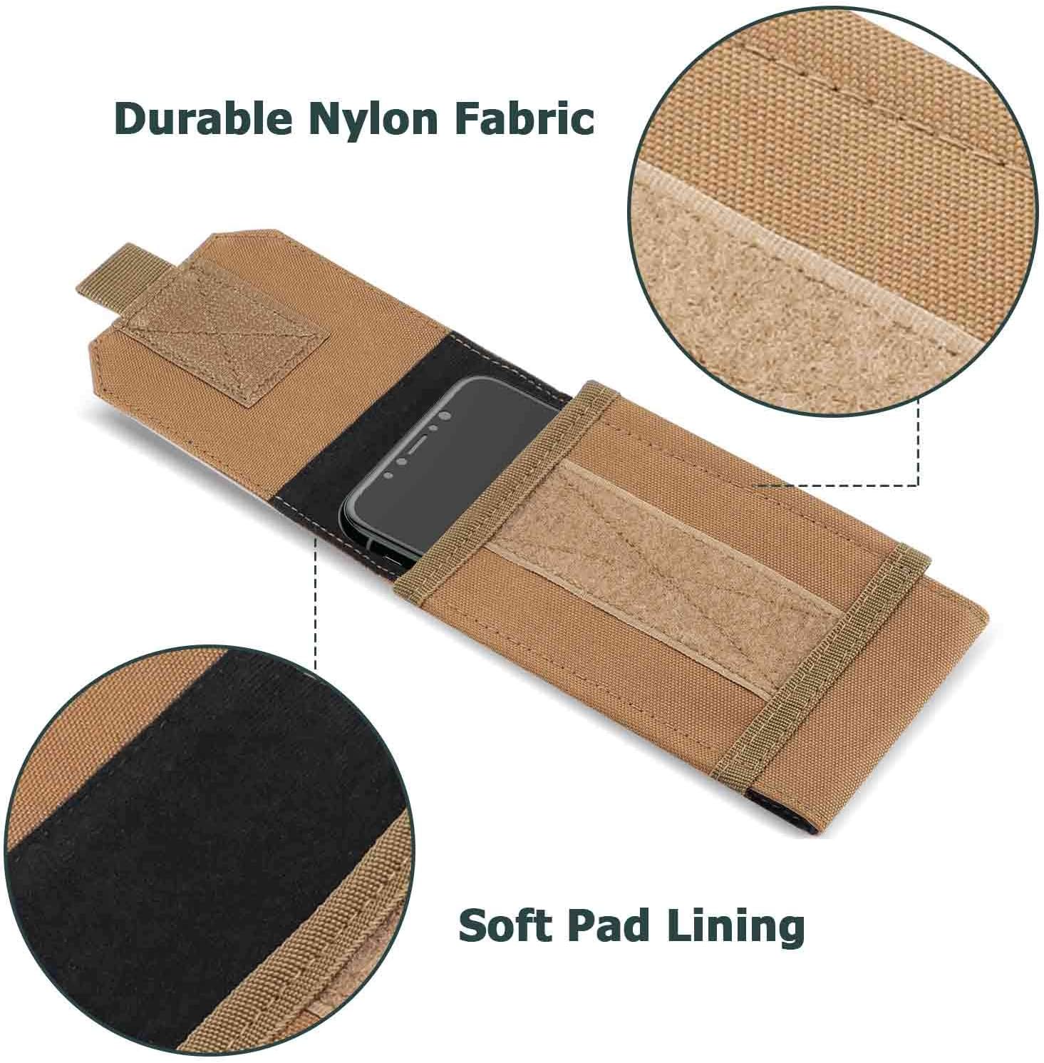Tactical phone pouch made of 800 denier waterproof nylon exterior and soft fleece material inner lining with velcro closed. lightweight durable, Wear-resistant, Tear-resistant