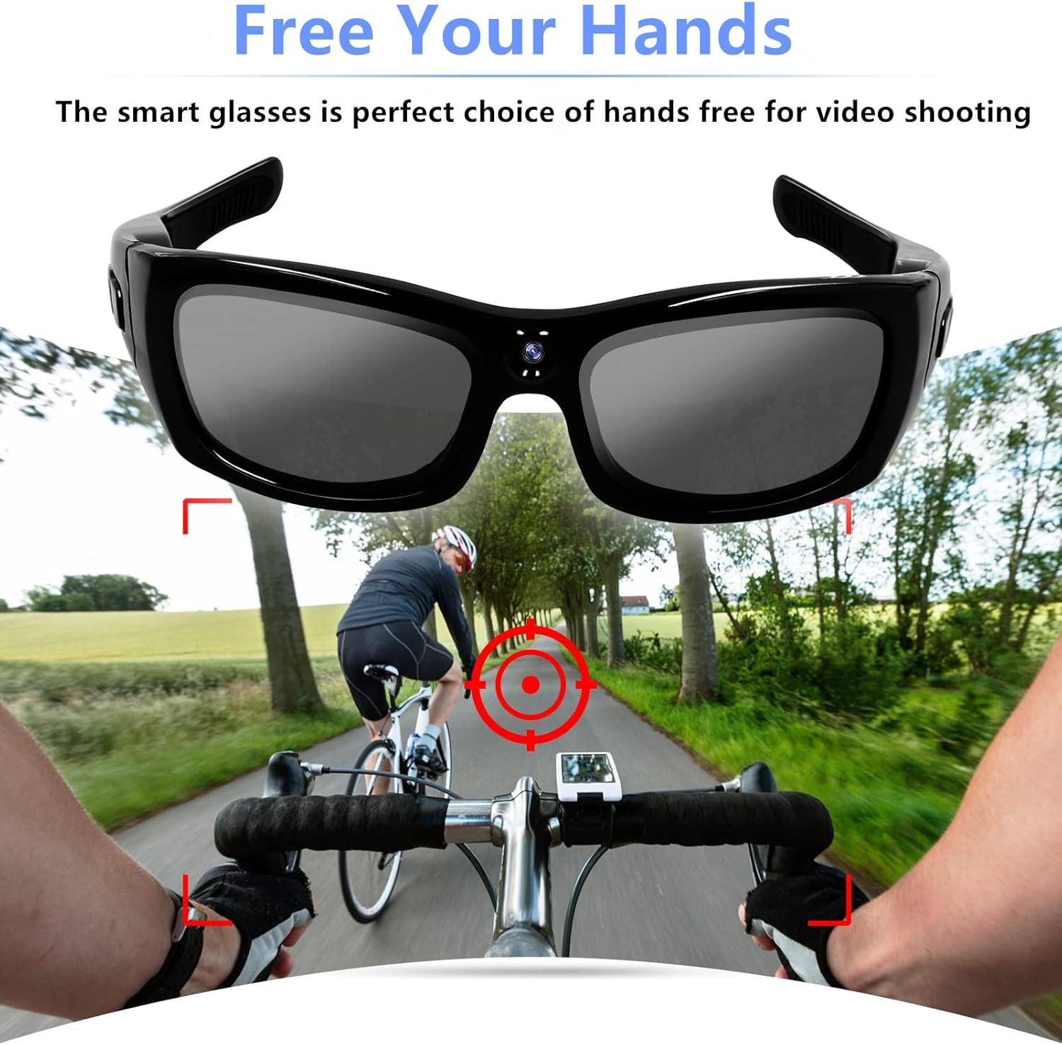 The video camera glasses shoots video in 1920 × 1080 resolution at 30fps, with 5MP camera lens, the glasses can capture 2592 × 1944 pixels photo. Keep your hands free while you are driving, riding or any sporting adventures.