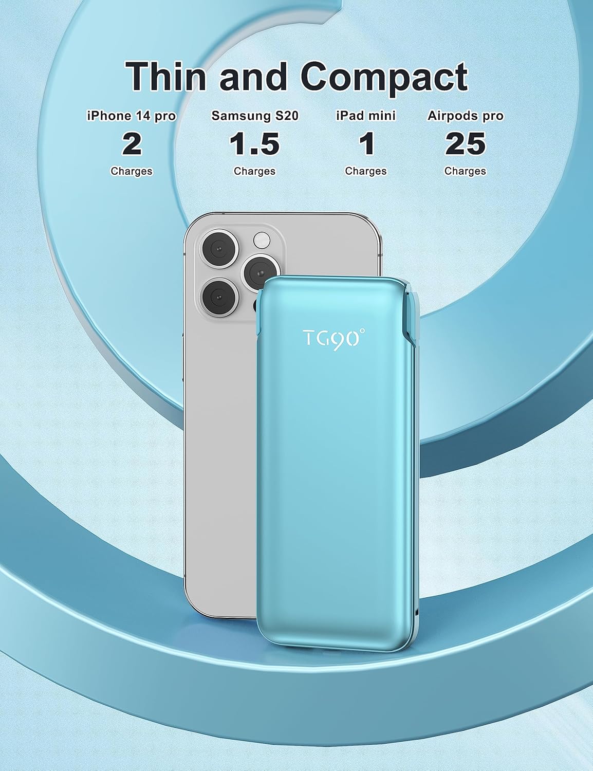 Compact Design with Powerful Capacity: Compact and stylish design with high capacity 10000mah, the 10000mAh rechargeable capacity can provide about 2-3 charges for your phones, enjoy your trip without worry about the power.