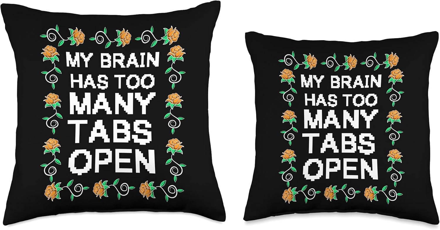 Too Many Tabs Brain focussed and Smart Throw Pillow, 18×18, Multicolor