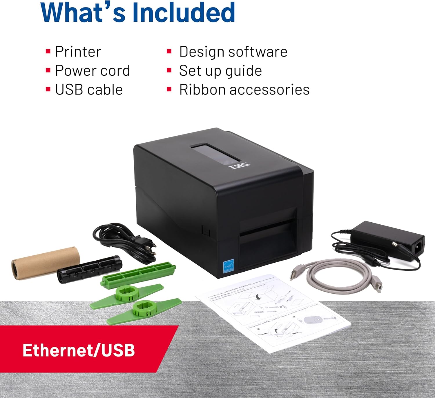 TSC TE210 Desktop Thermal Label Printer for Postage, Shipping Tags, Receipts, Barcodes, Retail, Small Business, School, Home Office, and Stickers, USB, Ethernet, Serial, 4 Inch Width