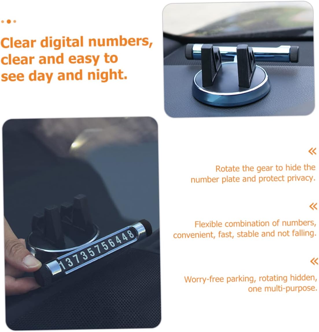 Car temporary parking card: free rotation to the comfortable angle you want, providing a good viewing angle for navigation or entertainment.